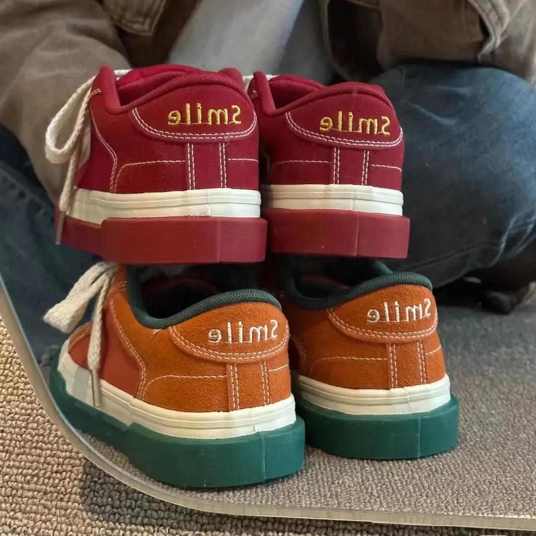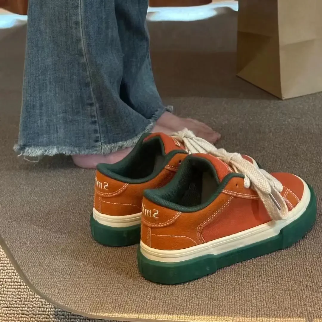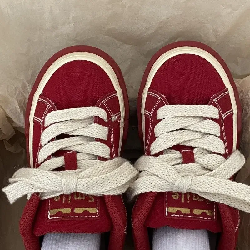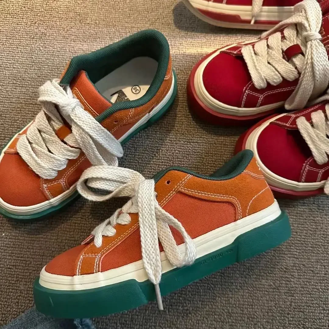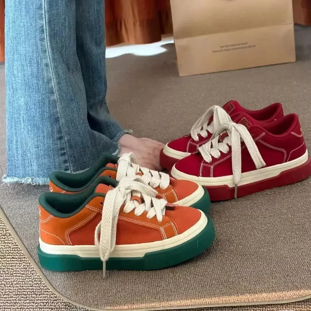 Vintage Red Canvas Low-top Women Sneakers Casual Letter Embroidery Skateboard Shoes Students Flat 2024 Fashion