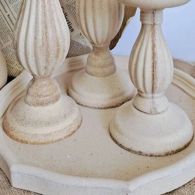 Vintage Wooden Candle Holder Modern Solid Wood Carving Candlesticks Tray Wedding Party Home Table Centerpiece Decoration Crafts