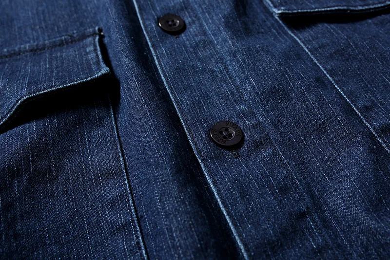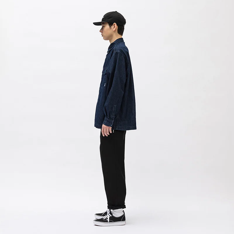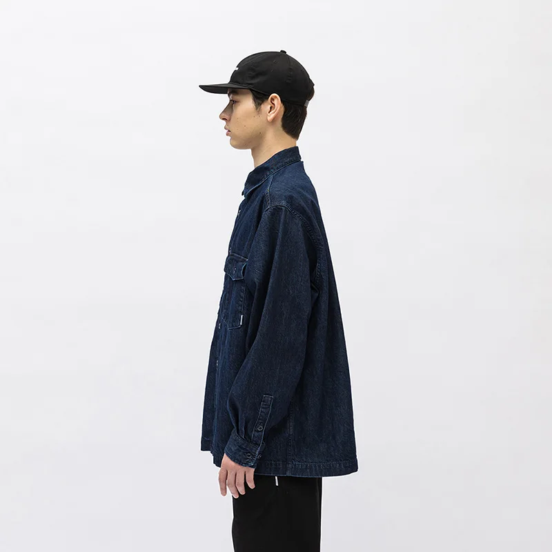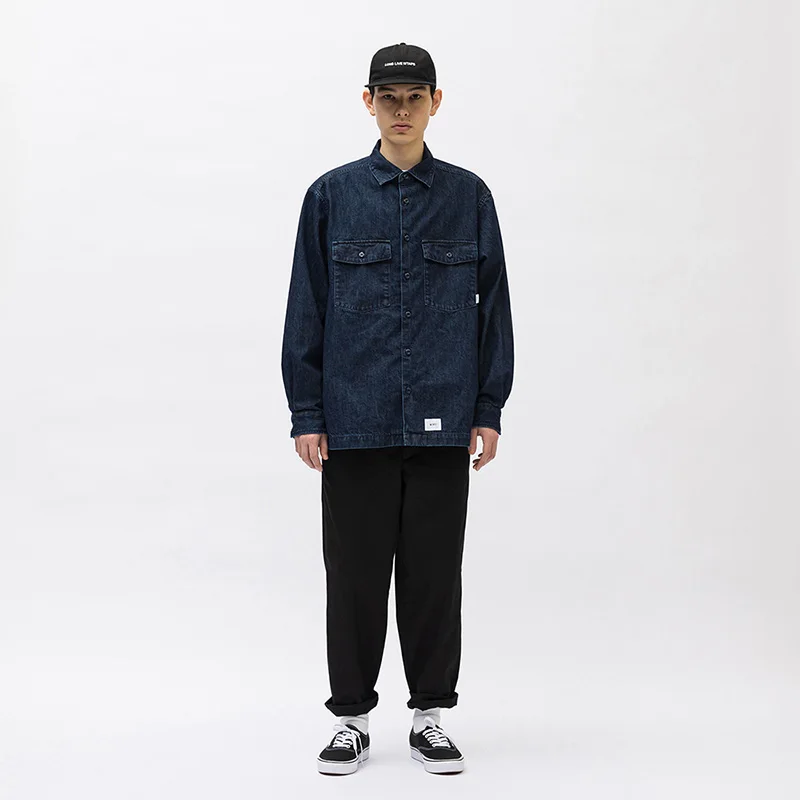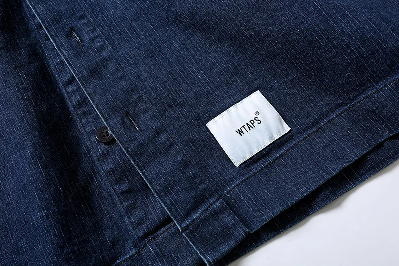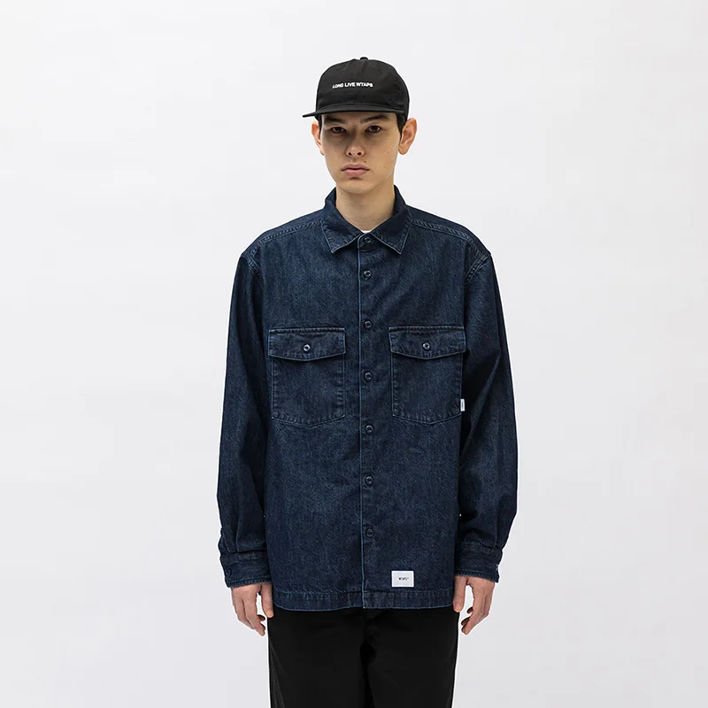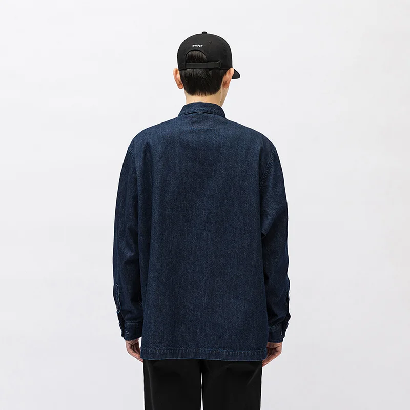Vintage Wtaps Street Fashion Denim Shirt Coat Men Casual Loose Pure Cotton Indigo Long Sleeve Shirt