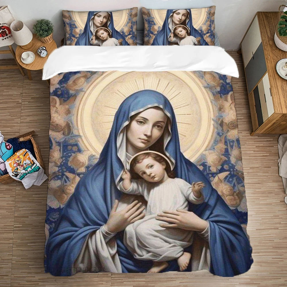 Virgin Mary Duvet Cover Pillowcase Bedding Set For Adult Boy Girl Holy Bedroom Decoration Children Gift Large US EU AU Size
