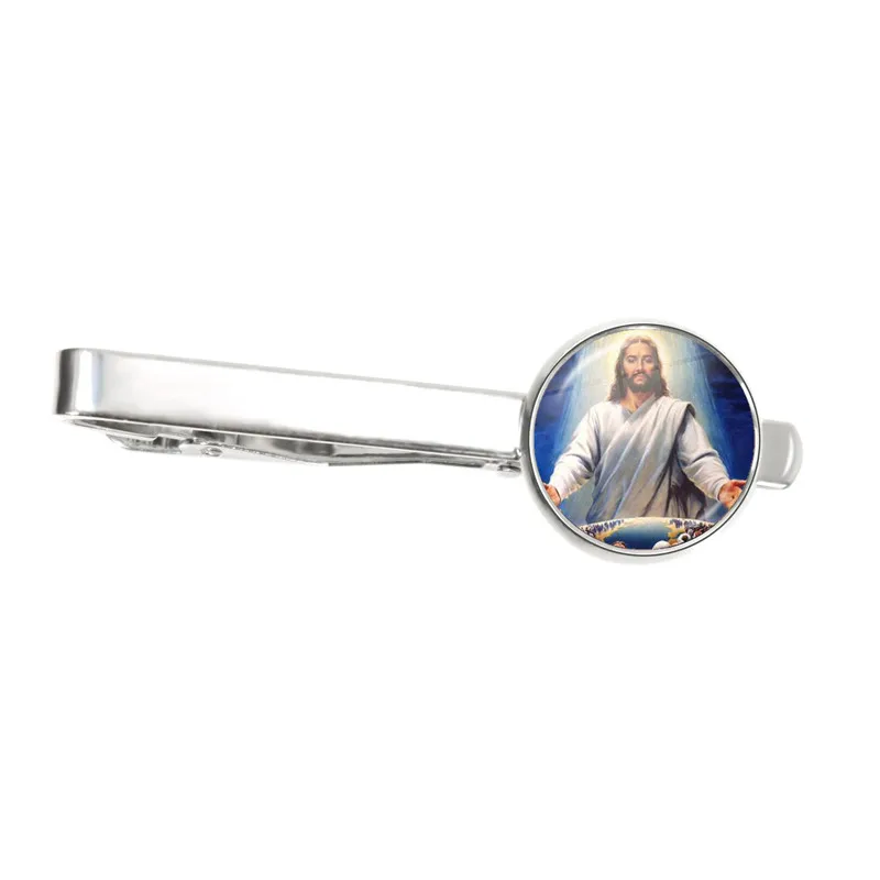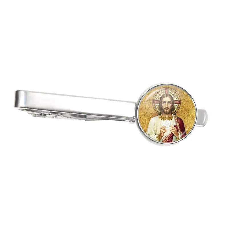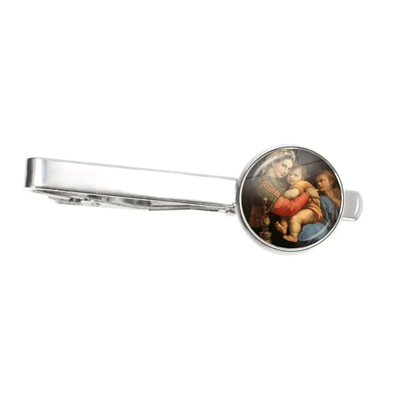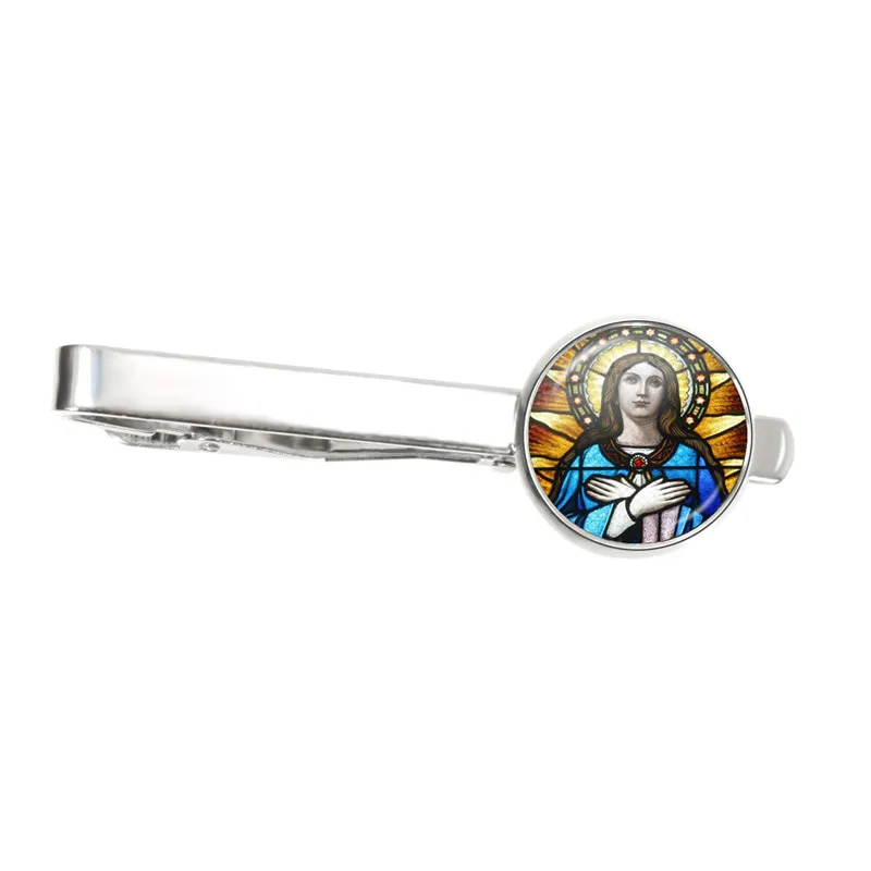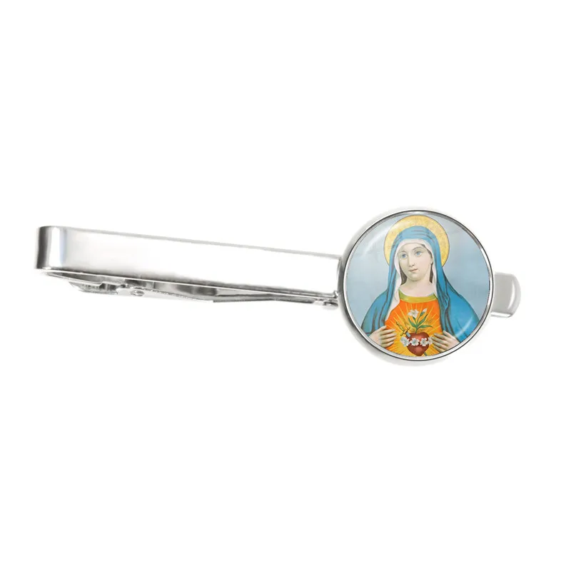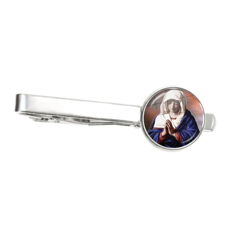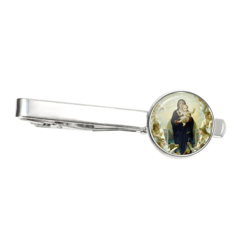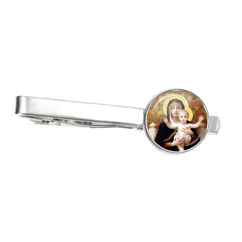 Virgin Mary with Baby Jesus Tie Clips Men Metal Tieclip Necktie Clip Pin Religious Art Jewelry Christian Gift