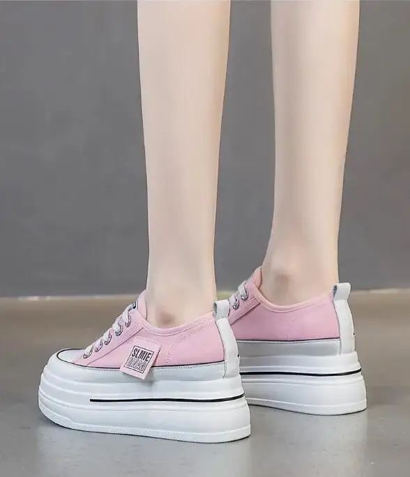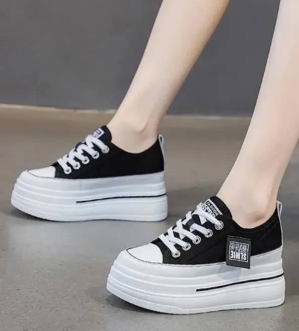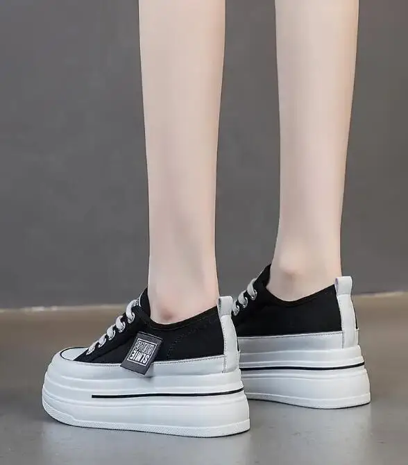 Vulcanized Platform Sneakers Wedge Shoes Non-slip Casual Shoes Women 2024 Autumn Lace-up Comfort Denim Canvas Shoes Thick Sole