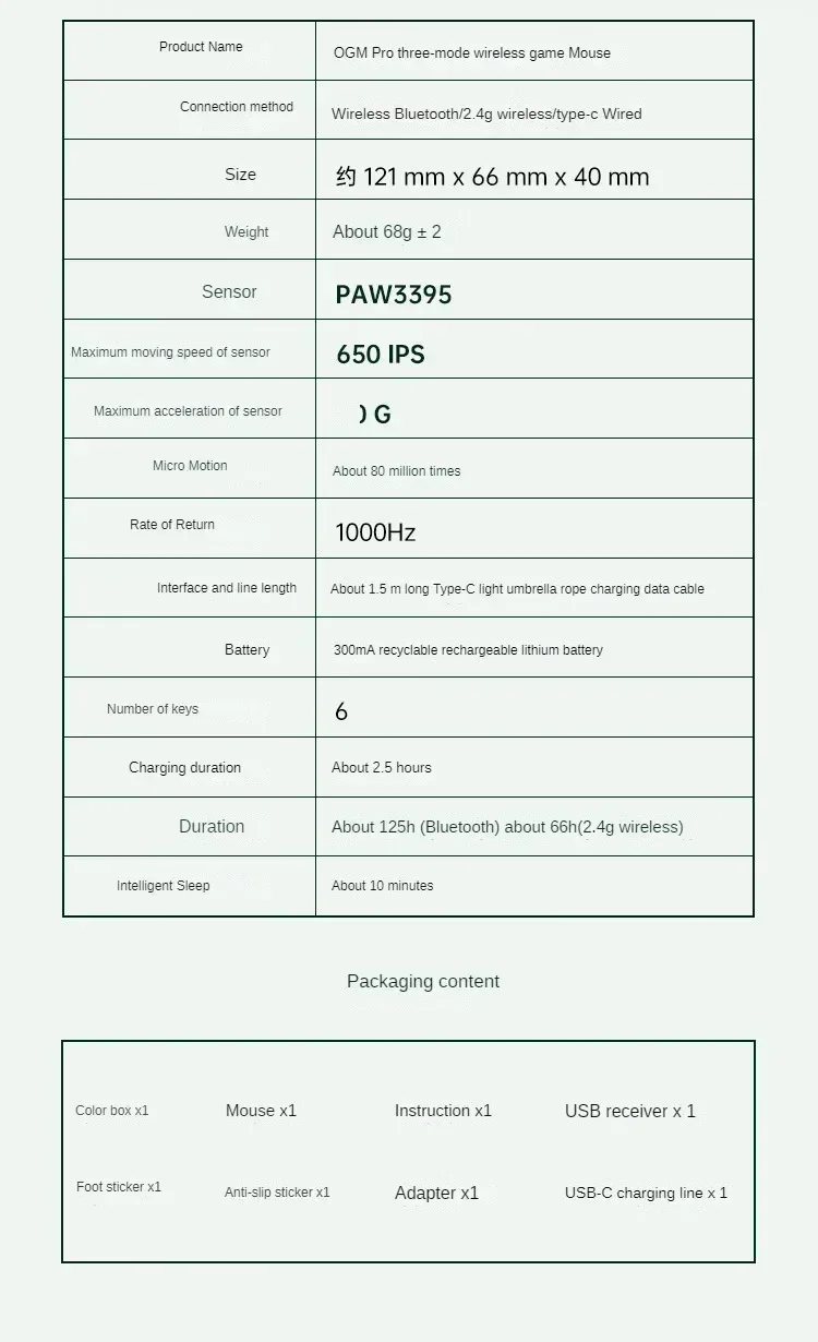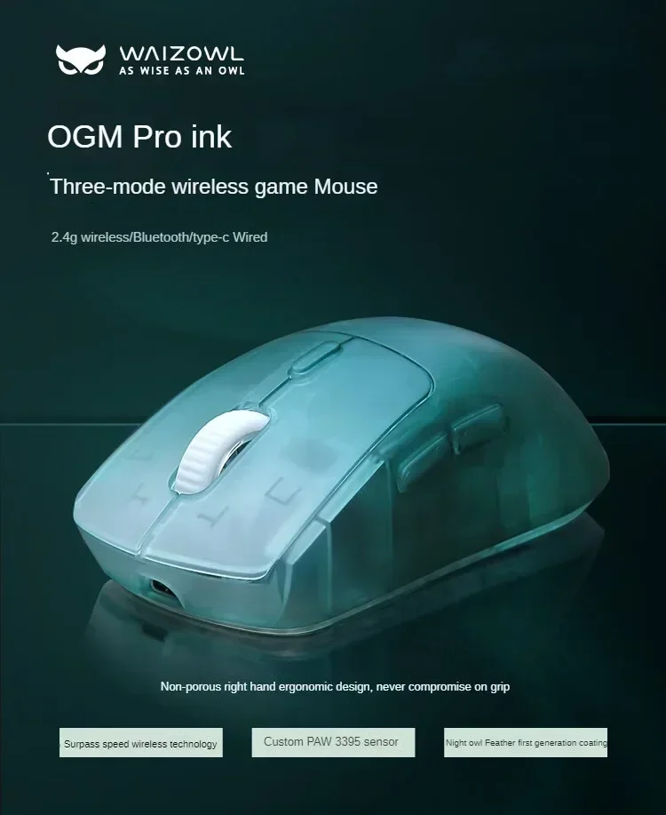Waizowl OGM Pro 3-mode E-sports Customize Mouse Laptops Accessories Ergonomics Gaming PC Mouse PAW3395 Wireless Bluetooth