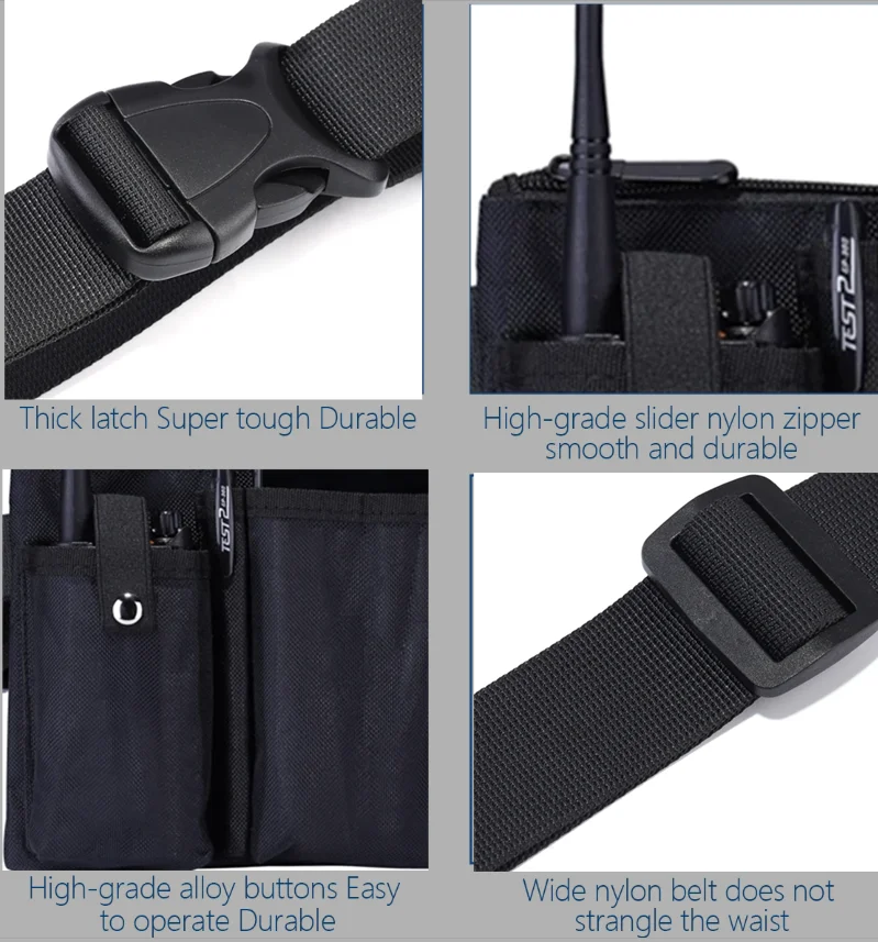 Durable and sturdy material, waterproof and scratch resistant, suitable for various occasions such as hiking and outdoor activities,waister. It can be equipped with walkie talkies, mobile phones, pens, mineral water, etc