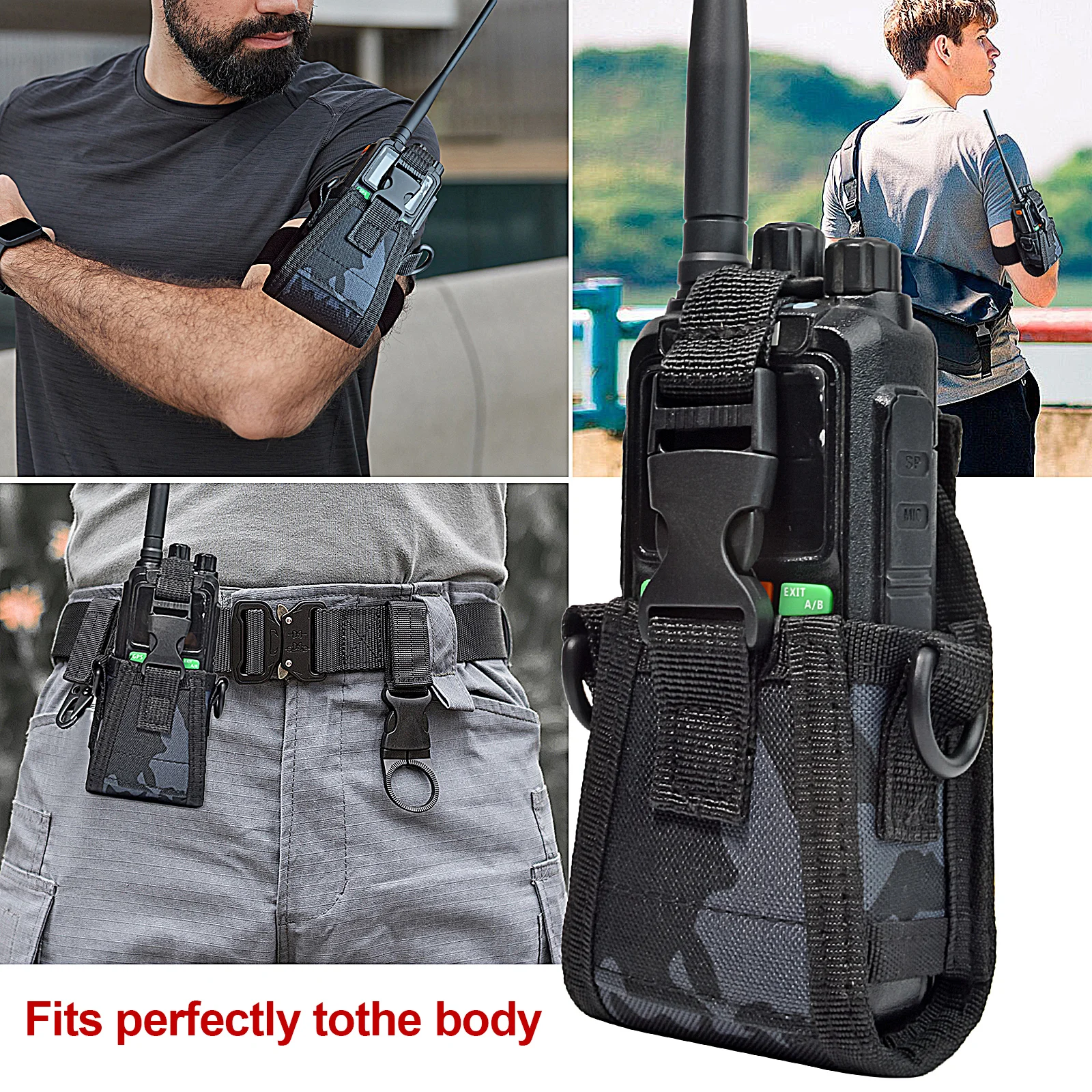 Adjustable belt for easy wearing: The radio holder features an adjustable belt that allows for a secure and comfortable fit.
