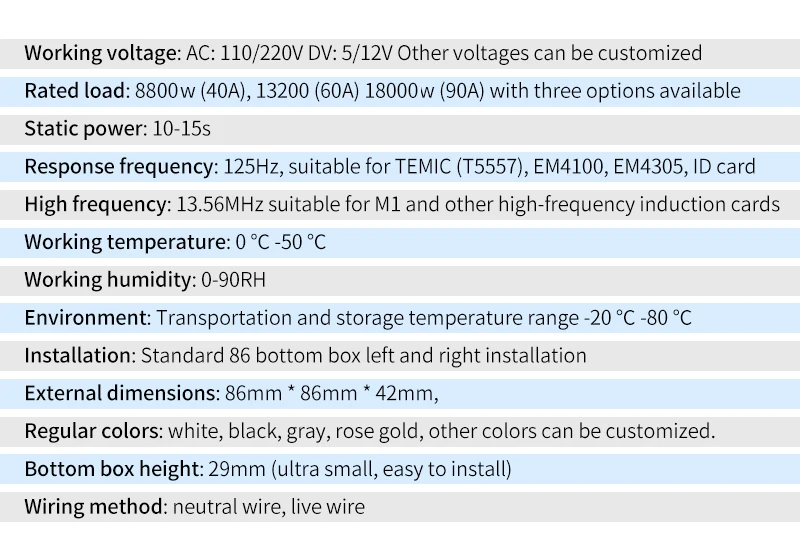 Wall Access Control Energy Saving Switch With 125KHz / 13.56Mhz RFID Card M1/T1/TK4100/T5577/EM4305 Hotel Room electronic Switch
