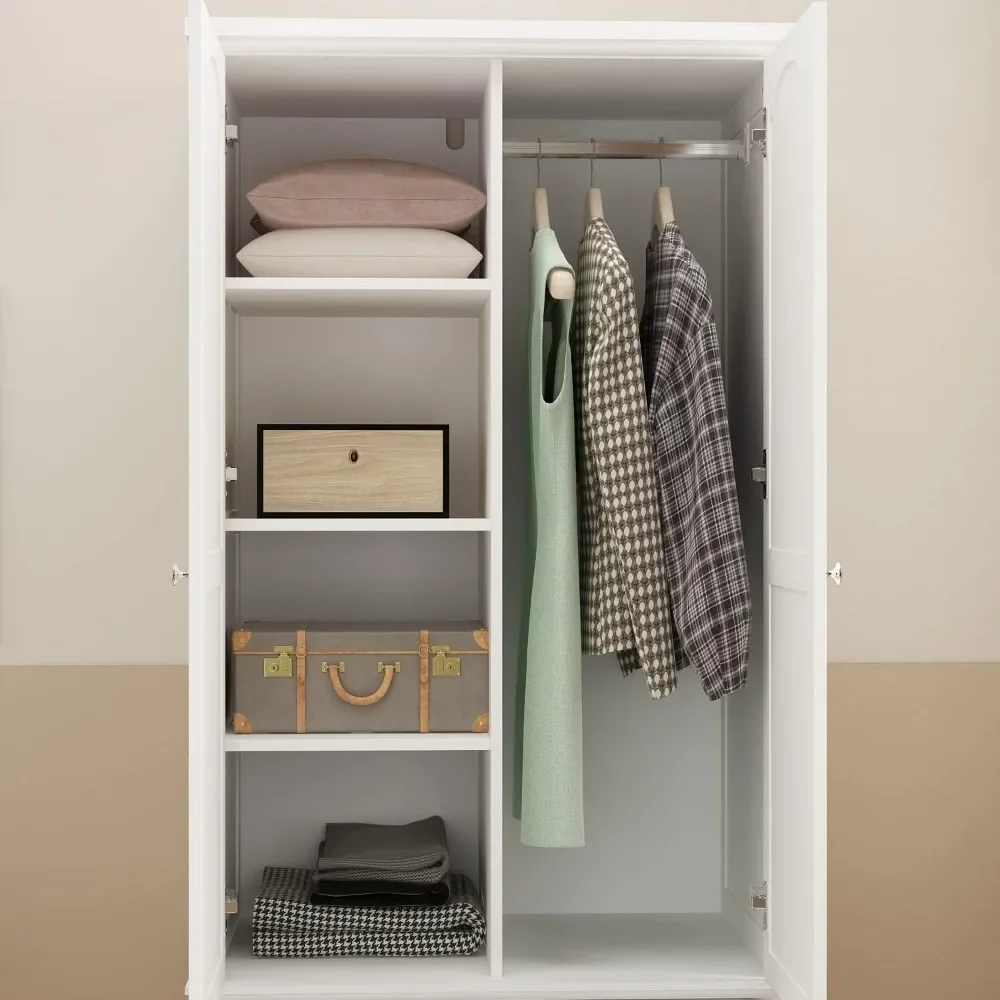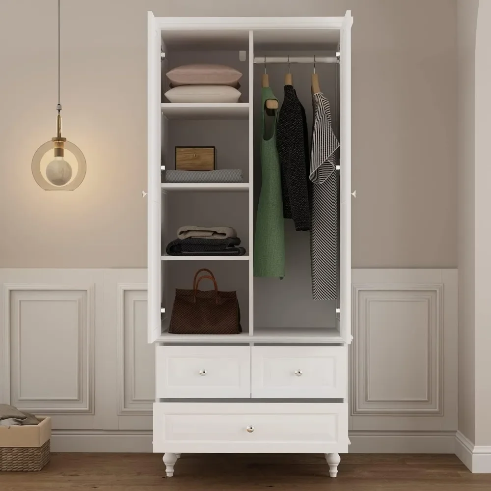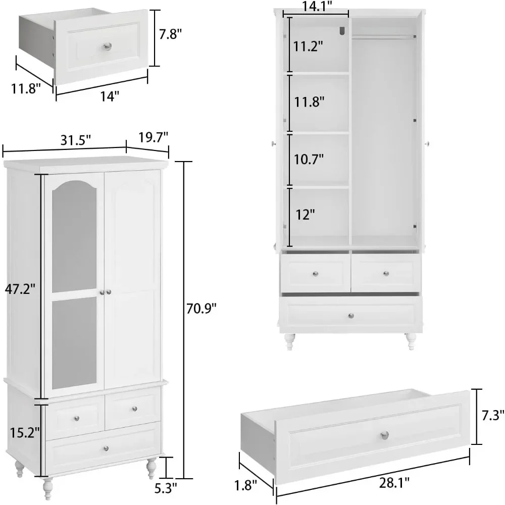 • 【Elegant Style】- This wooden wardrobe combines white board with silver handle to create minimalist charm. The stylish legs will add vintage atmosphere. This large wardrobe matches well with various house decors
