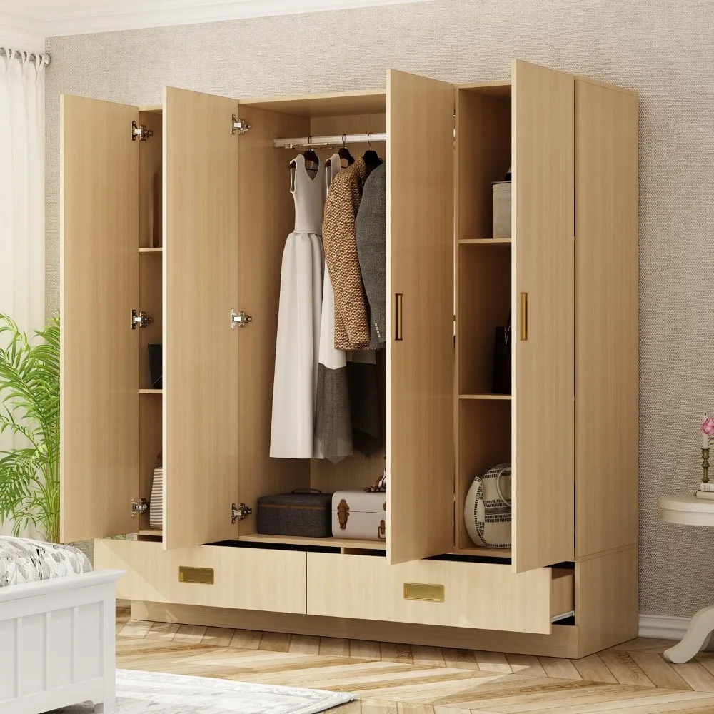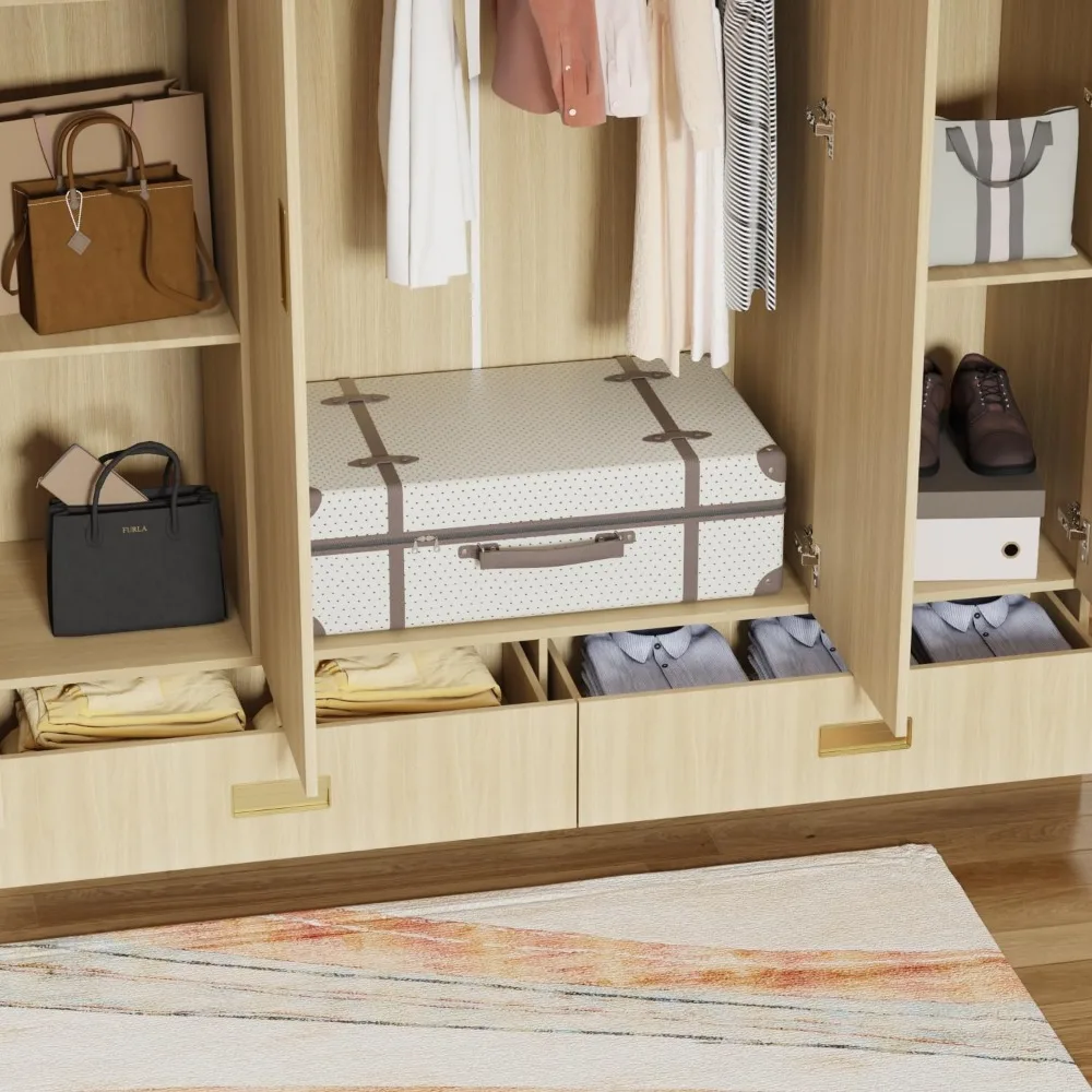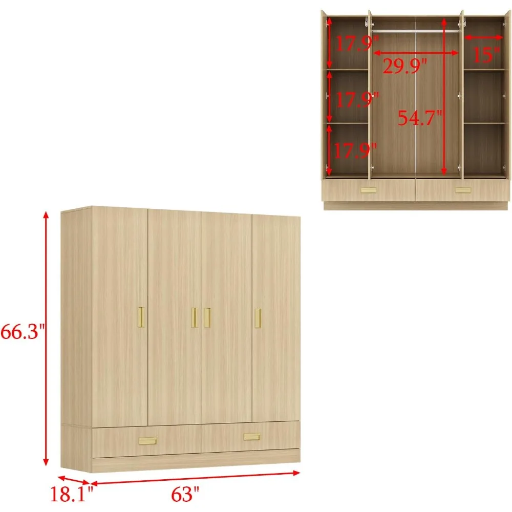 - Diseño atractivo]: el armario adopta un diseño minimalista y que combina con todo, crea un ambiente cálido para usted.La veta de la madera con mangos de metal dorado proporciona la elegancia perfecta.La apariencia simple pero elegante mejorará toda la decoración de su habitación y mostrará su estética avanzada.