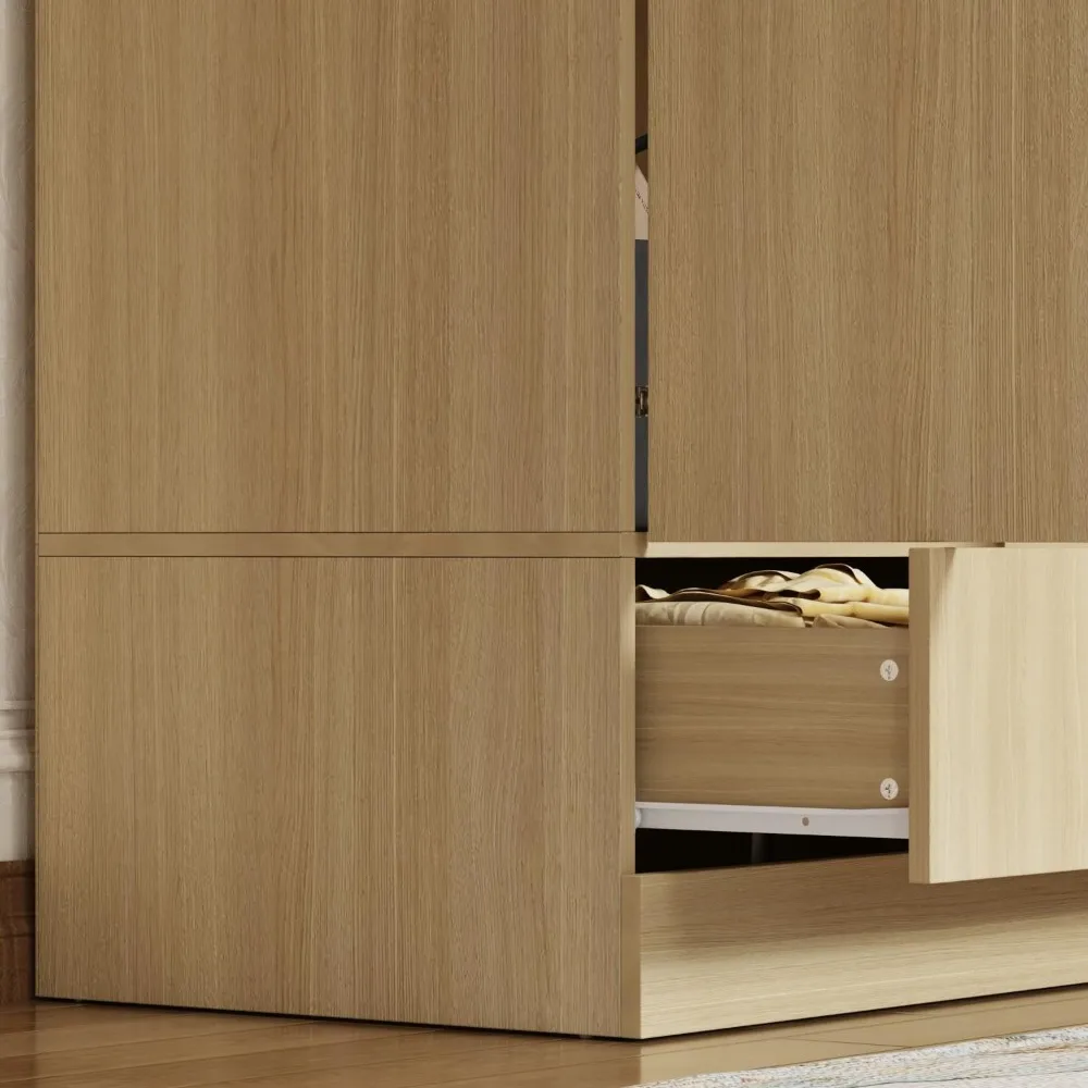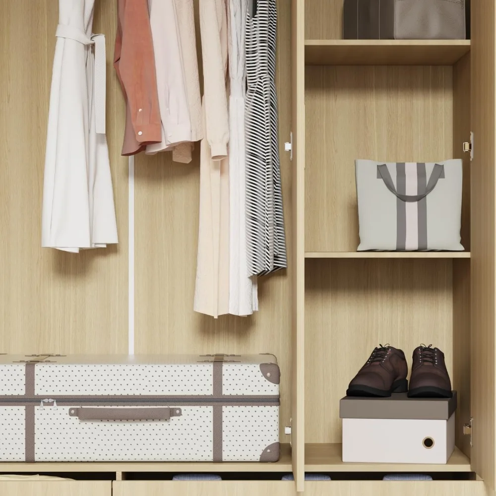 - [Armario que ahorra espacio]: equipado con barra para colgar, cajones y estantes, el gabinete de almacenamiento de ropa integra múltiples funciones en 1 espacio completo.PodrÃa satisfacer todas sus necesidades de almacenamiento en el dormitorio mientras mantiene la habitación ordenada.Mientras tanto, cada espacio de almacenamiento se utiliza bien, lo que ahorra más espacio en su dormitorio.