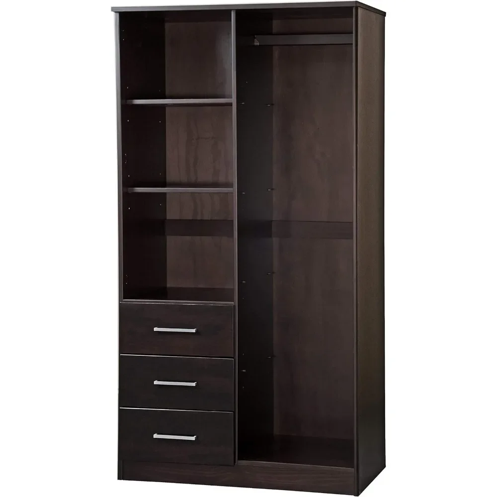 Wardrobe100% Solid Wood Metro 2-Door Wardrobe Armoire w/Raised Panel Doors, Java, 37.75″ w x 72″ h x 20.75″ d,