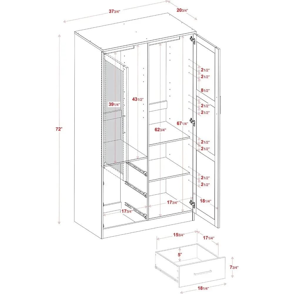 - Overall Size: 37.75″w x 72″h x 20.75″d