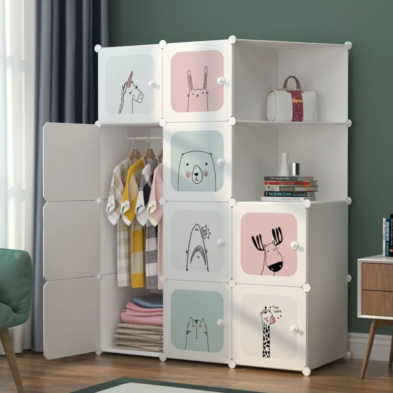 Simple wardrobe DIY bedroom storage cabinet Plastic assembly children’s wardrobe simple combination storage shelf dust folding