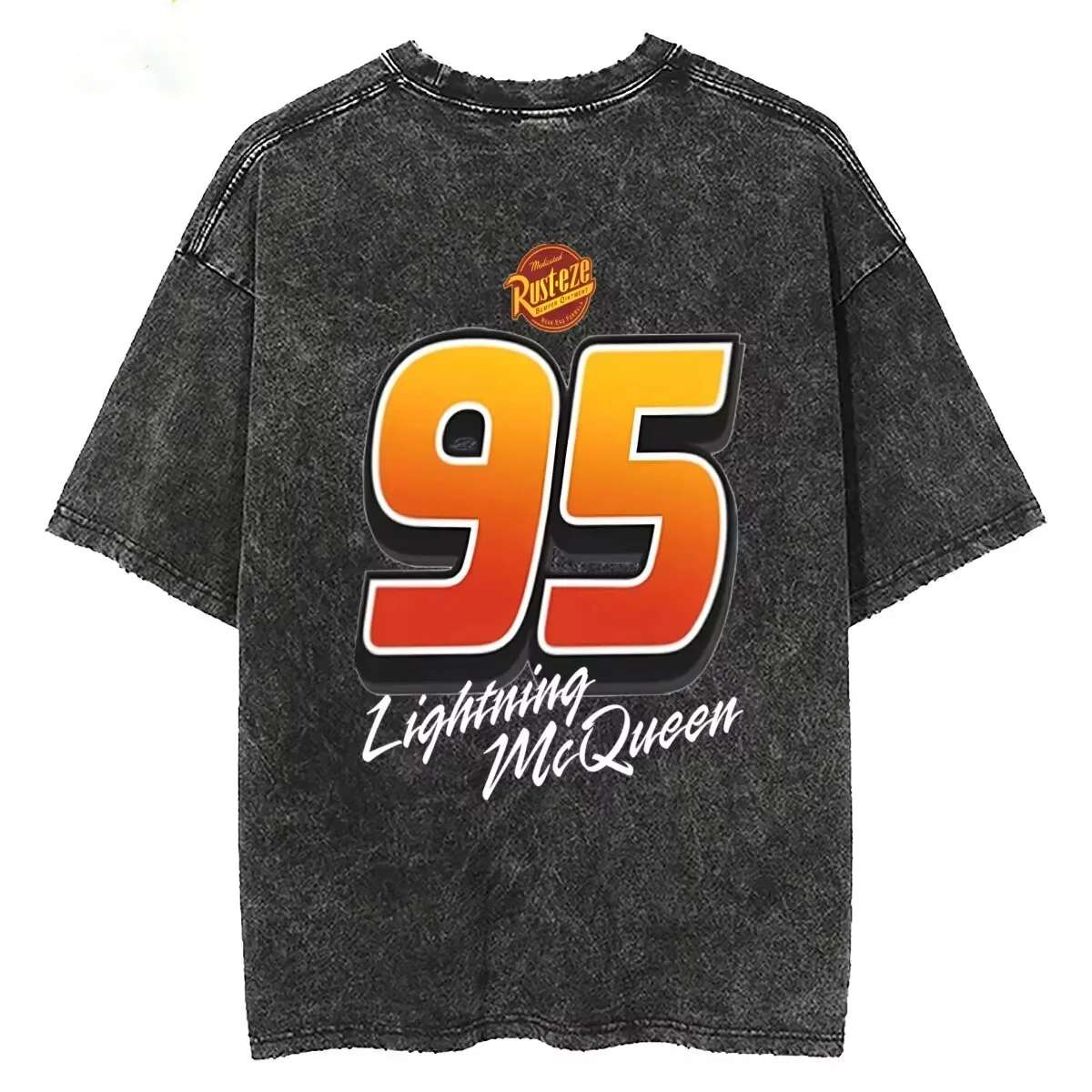 Washed T Shirts Vintage Cars 95 Lightning McQueen Hip Hop Retro T-Shirt Streetwear Short Sleeve Tops Tops Tees for Men Women