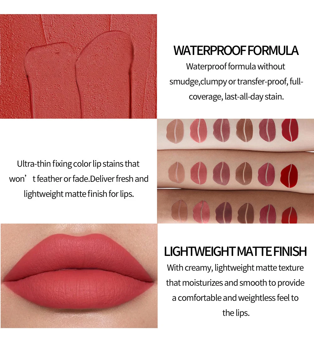 Waterproof Liquid Lipsticks Tint Lips Makeup Matte Velvet Lipstick Lip Gloss Red Sexy Cosmetics 6 Colors Long Lasting Lip Glaze
