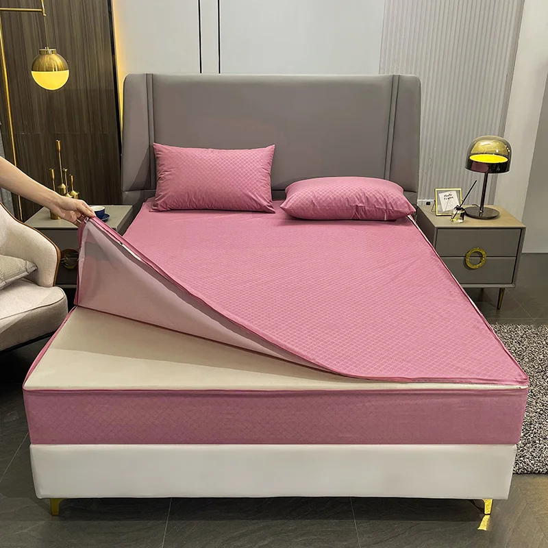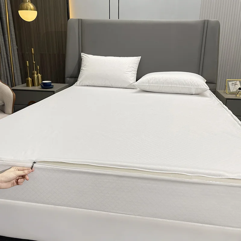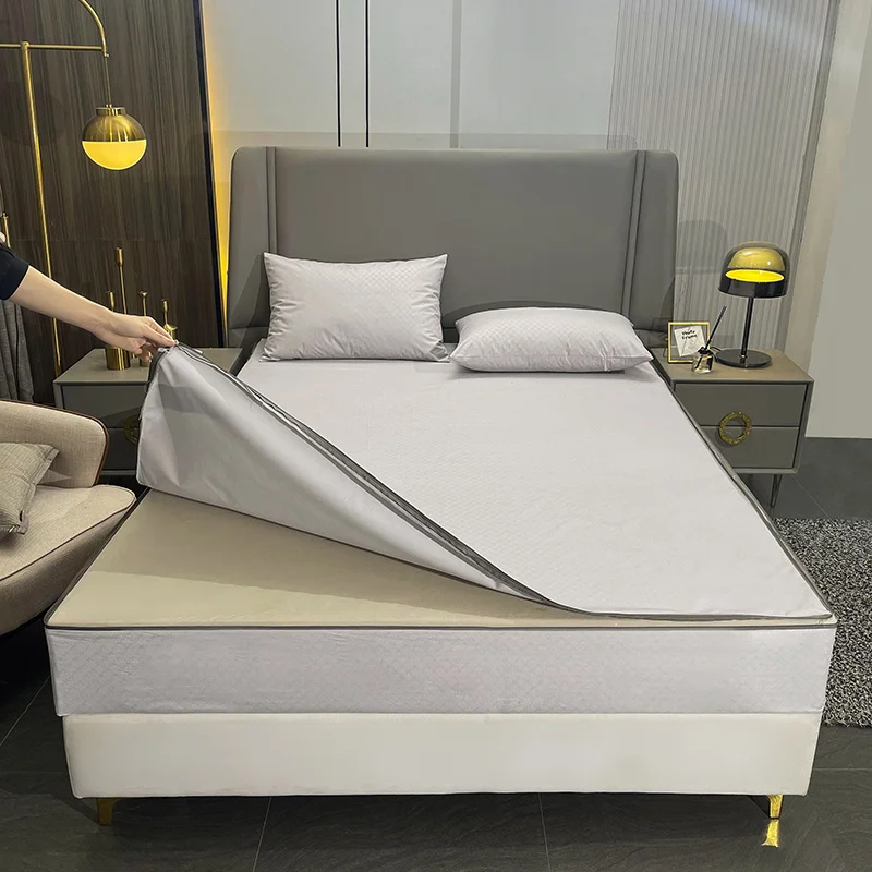 Waterproof Mattress Cover with Zipper 6-Sides All Inclusive Fitted Sheet Dust-proof Bedspreads for Double Queen King Protector