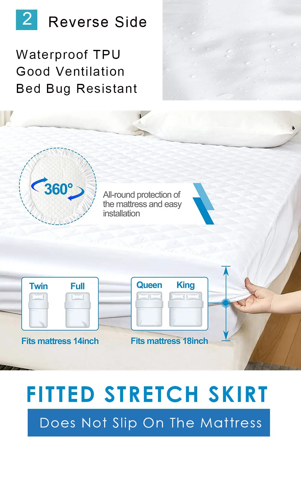 Waterproof Mattress Pad Protector Cover Quilted Mattress Topper Deep Pocket Fits Up to 21″