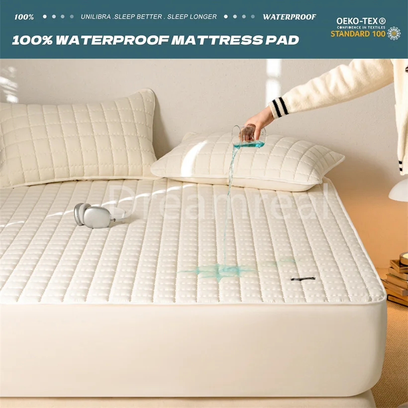 Waterproof Mattress Protector Soft Breathable 100% Waterproof Mattress Pad Cover Soybean Bedspread Durable Non-Slip Bed Cover