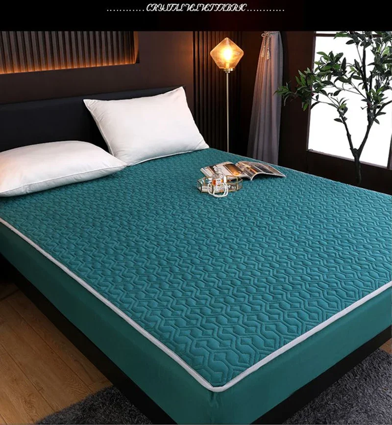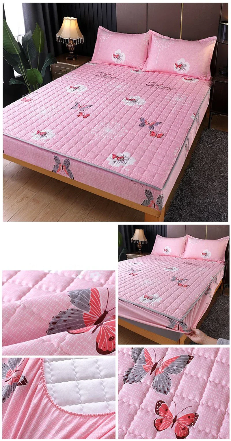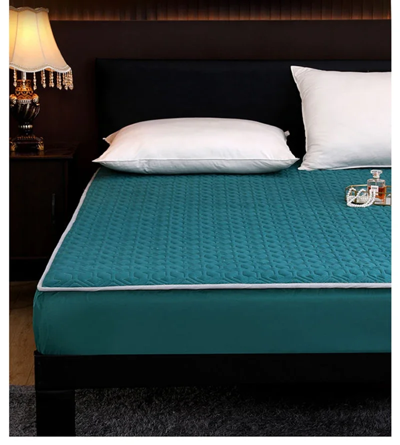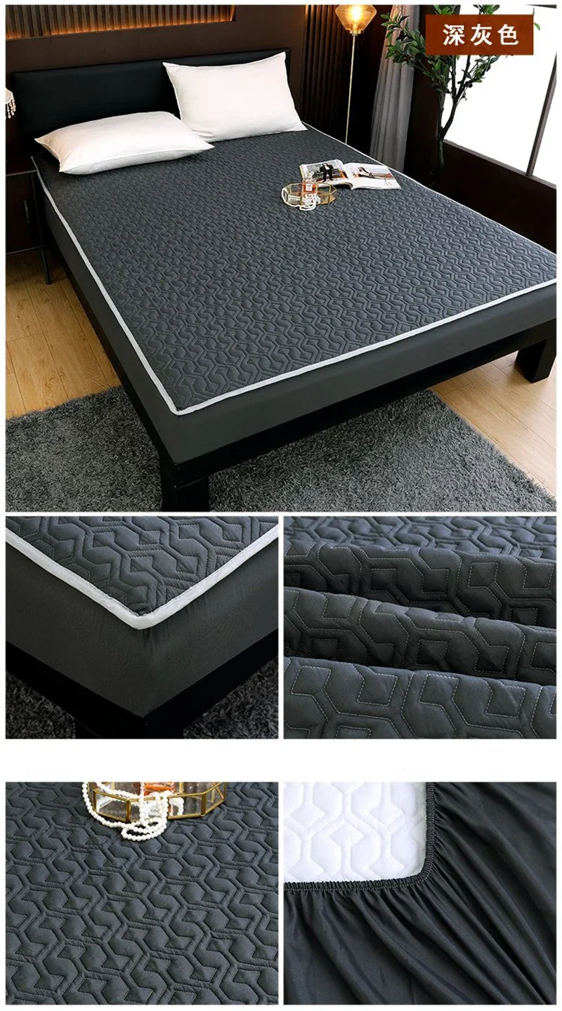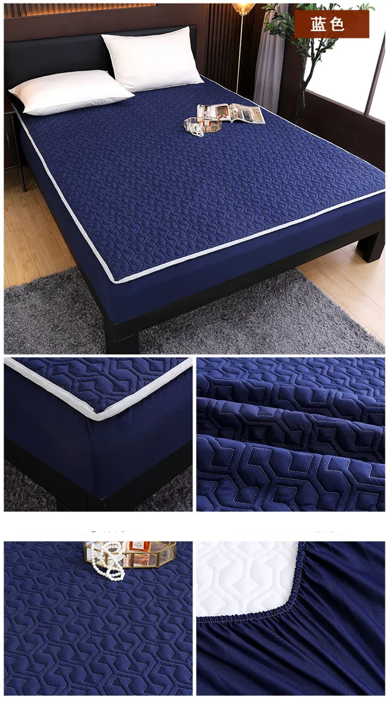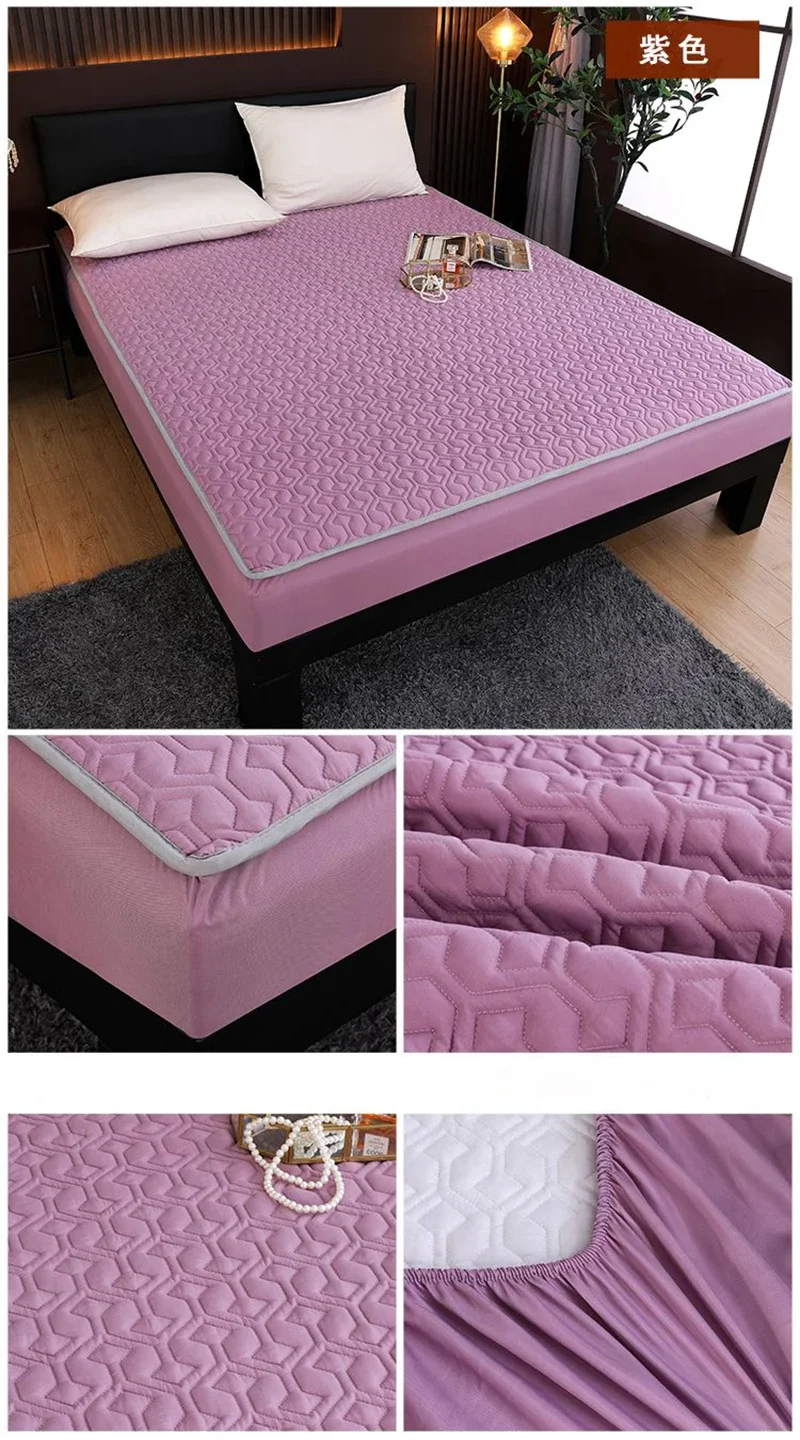 Waterproof Mattress Protector Thickened Pure Cotton Queen Double Fitted Sheet Anti-slip Bedspread With Pillowcase Solid Color