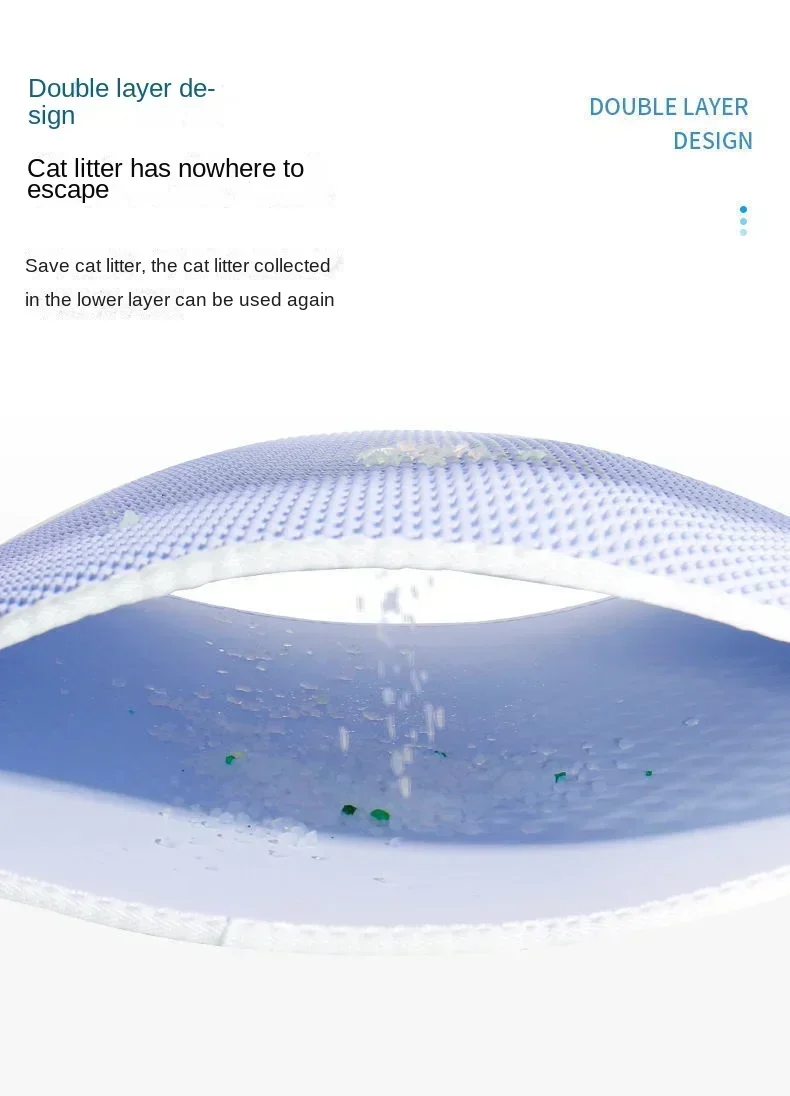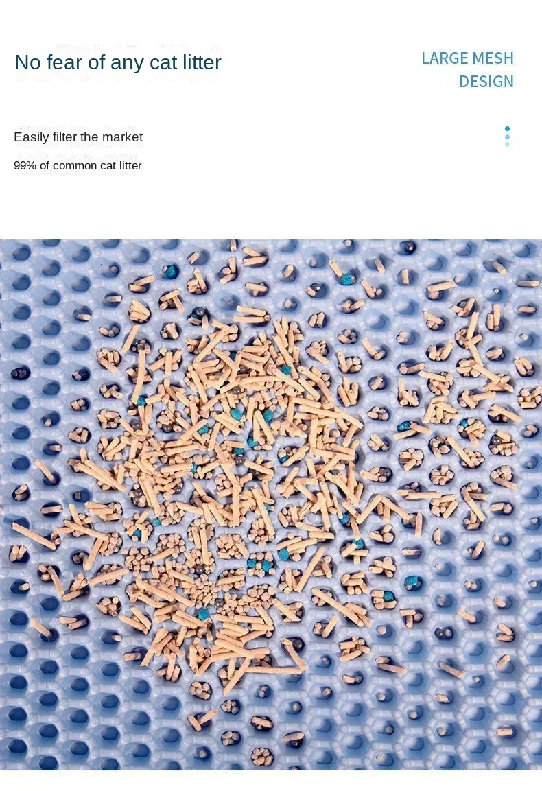The cushion is very suitable for catching cat litter and for delicate claws. Our soft EVA material is very gentle to sensitive cat claws. Cats even like to step on it or take a nap in the afternoon. The double layer design can filter the cat litter and gather it at the bottom. Shake gently to release the litter.