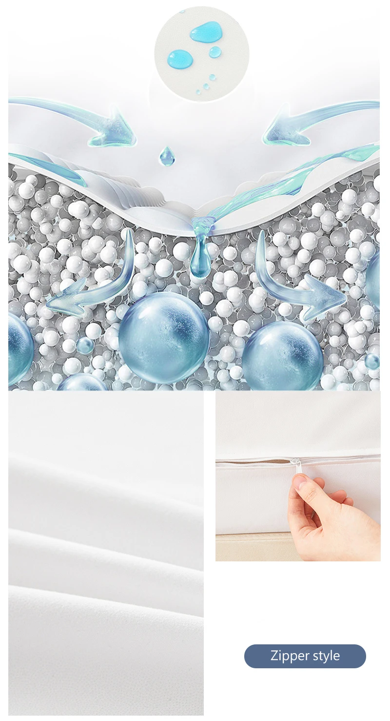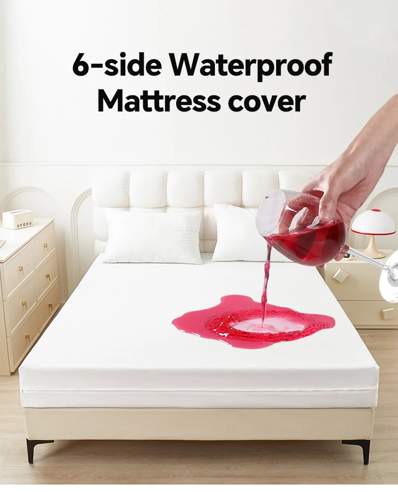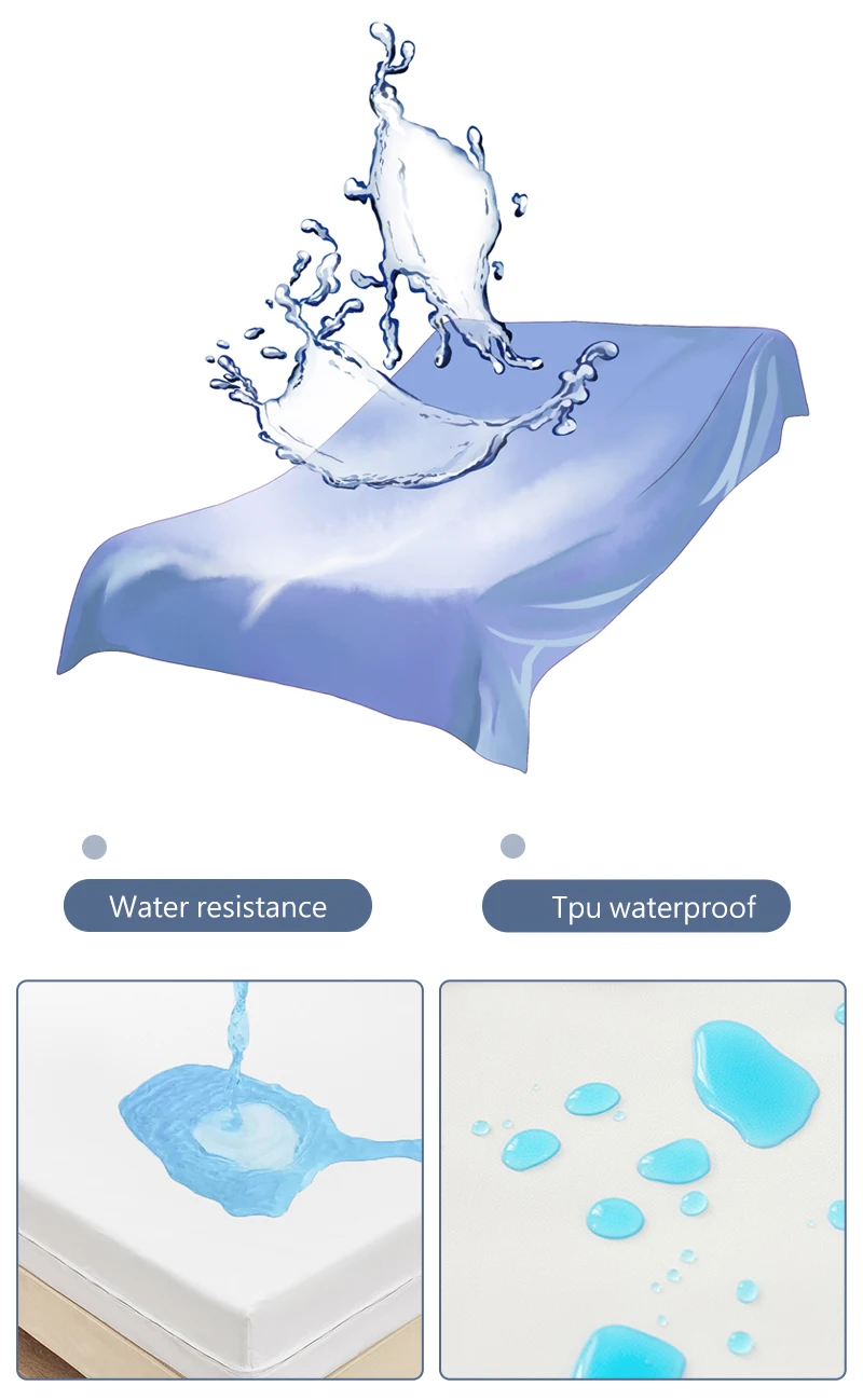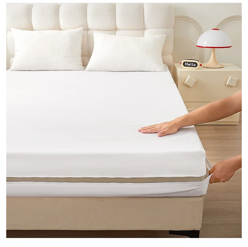 Waterproof Polyester Mattress Protector, Soft Comfortable Breathable Solid Color Bedding Mattress Cover Fitted With Zipper