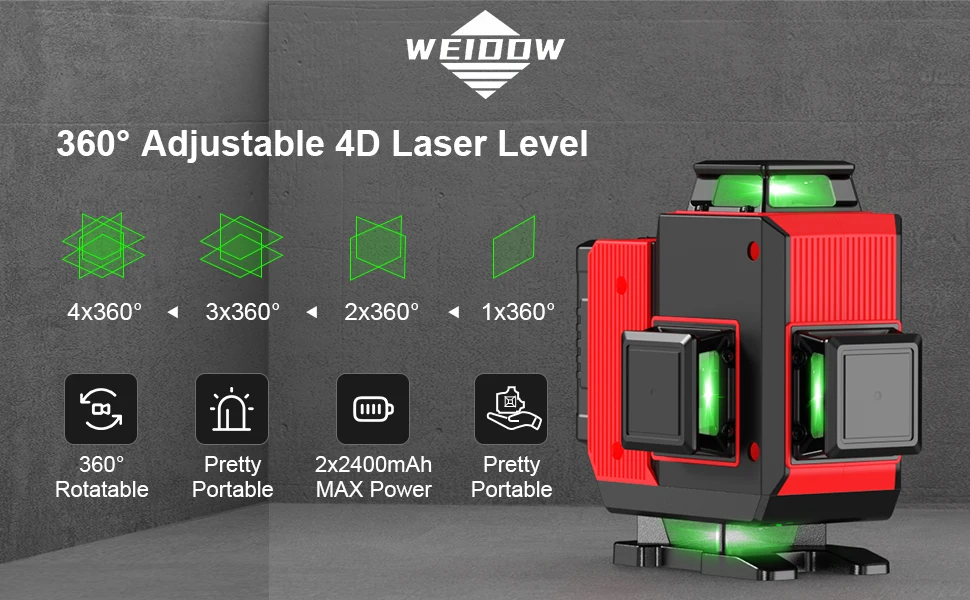 WEIDDW 16 Lines Professional Laser Level 360 Self Leveling – Accurate Laser Level Line Tool Horizontal Vertical Laser Level
