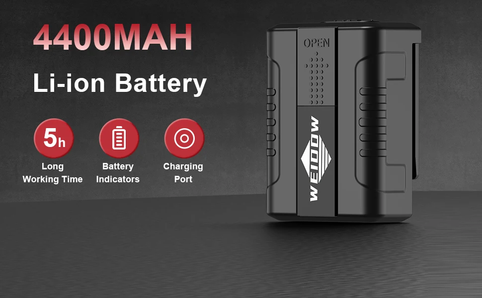 Weiddw self leveling laser level equipped with 1 pack 4400mAh Li-ion battery,support you working up to 5 hours with 16 lines all tun on.And with the charger included,you can take the laser level out with one battery installed,