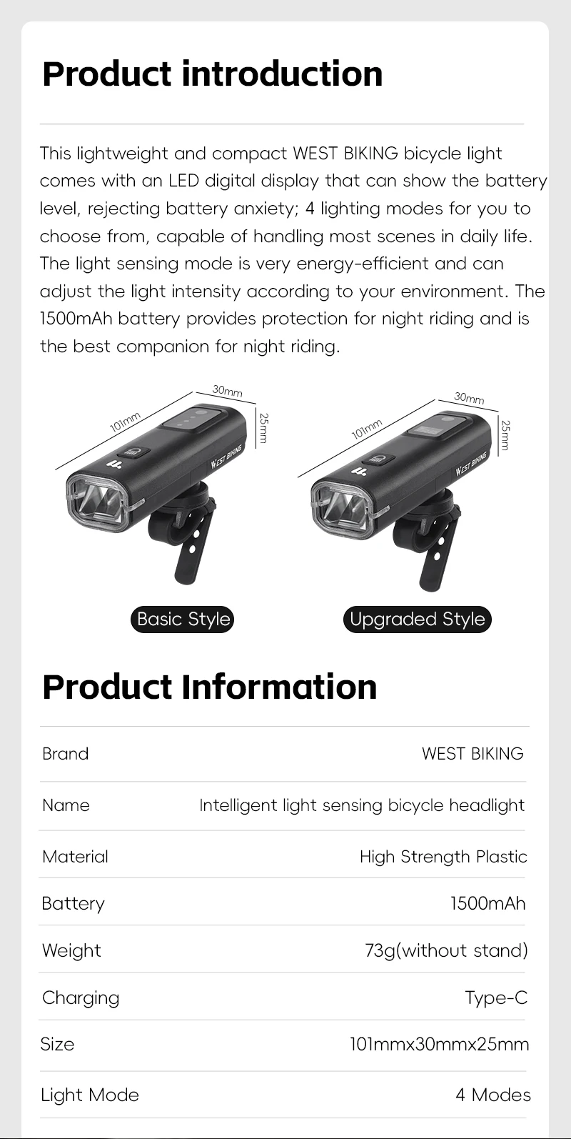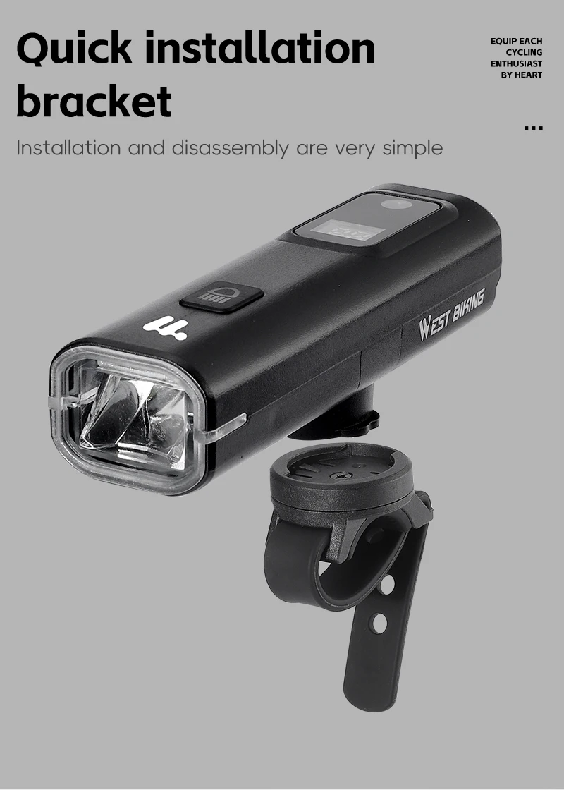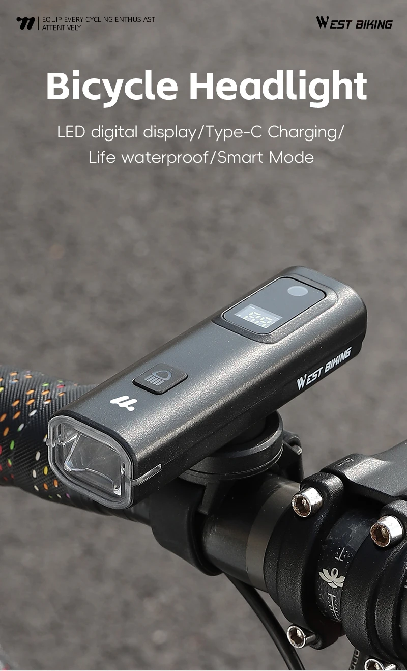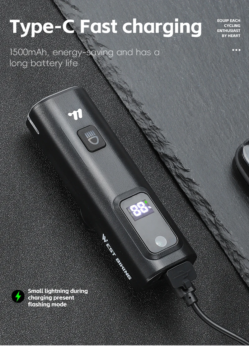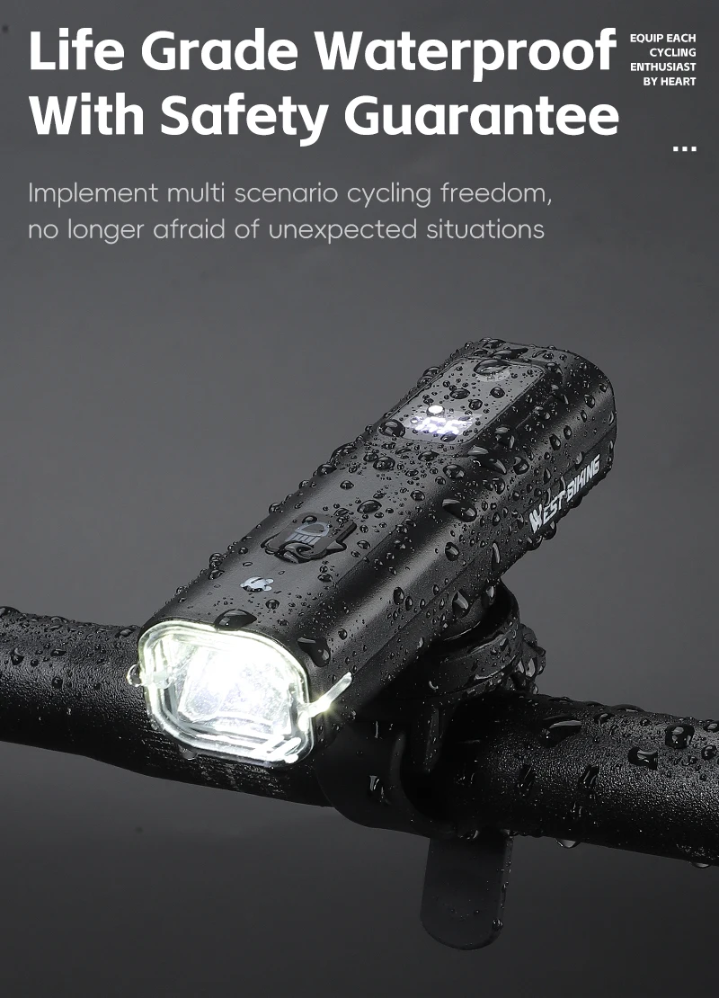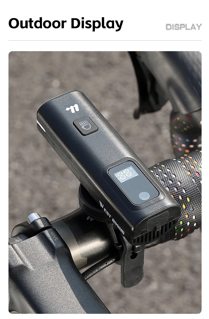 This lightweight and compact WEST BIKING bicycle light comes with an LED digital display that can show the battery level, rejecting battery anxiety; 4 lighting modes for you to choose from, capable of handling most scenes in daily life. The light sensing mode is very energy-efficient and can adjust the light intensity according to your environment. The 1500mAh battery provides protection for night riding and is the best companion for night riding