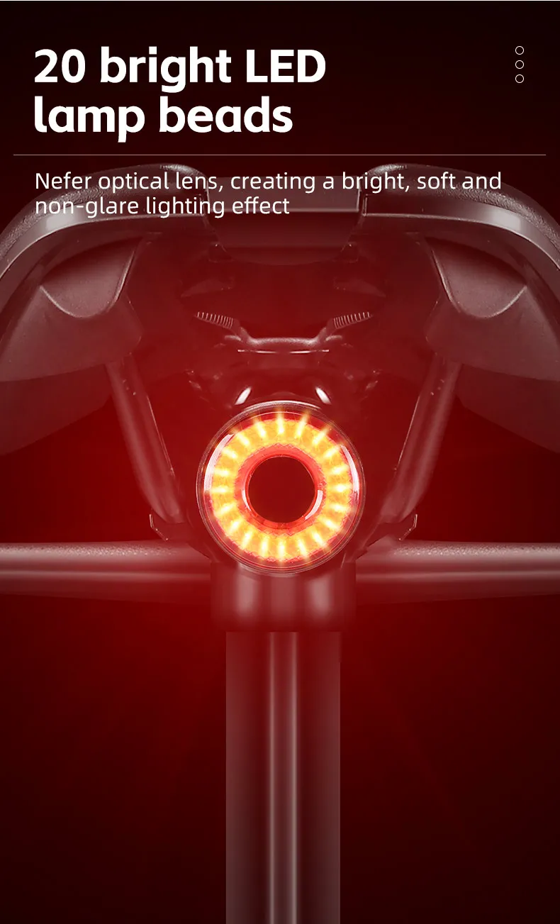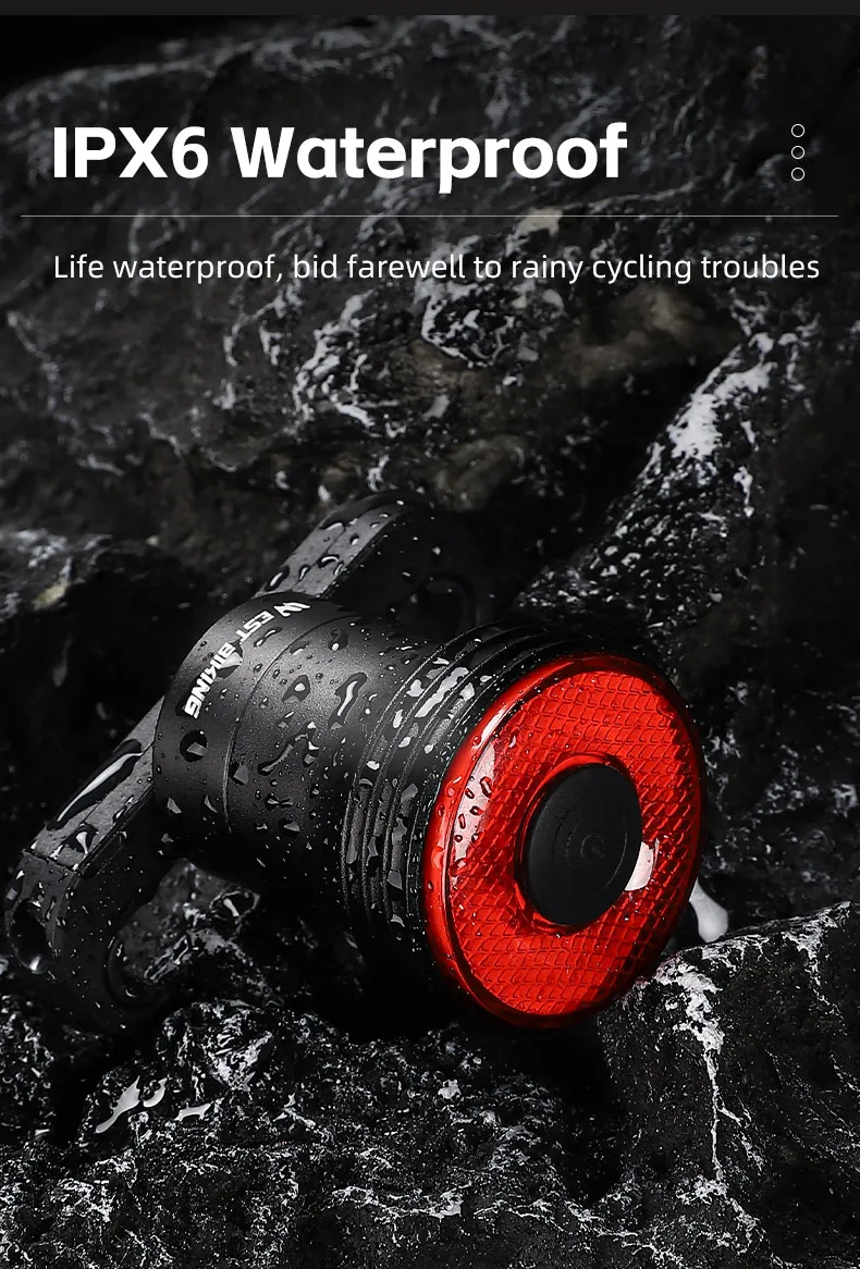 Carbon Smart Bicycle Rear Light Road Bike MTB Auto Brake Intelligent Sensing tail Flashlight LED USB Charging