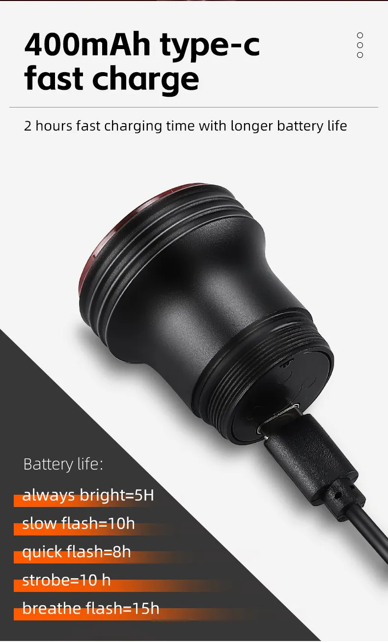 Light Modes:Always On-Slow Flash-Fast Flash – Strobe – Breathing Flash