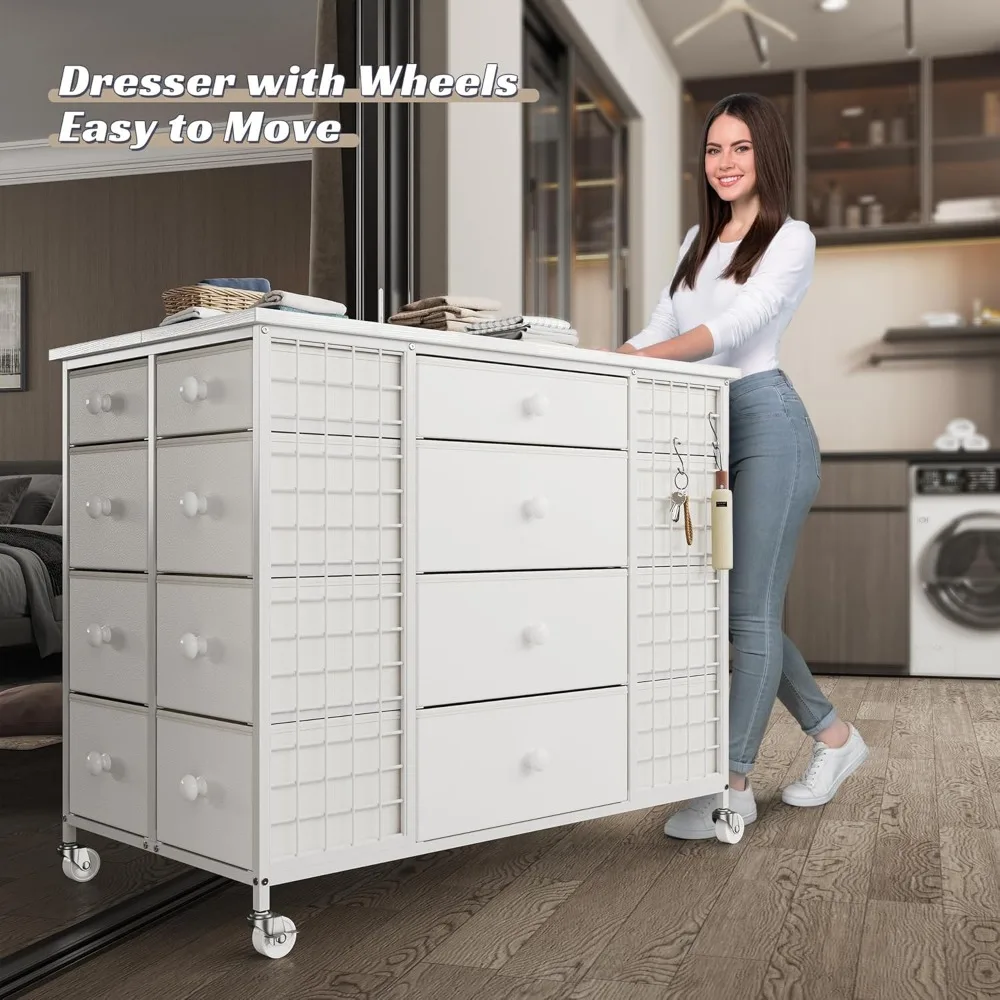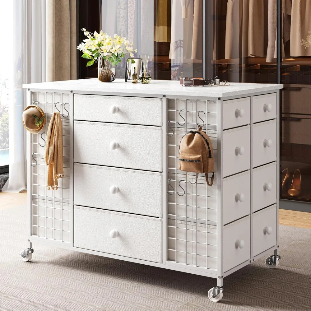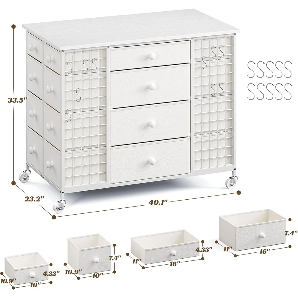 - Closet Storage with Smooth Rolling Lockable Wheels: Comes with 4 smooth rolling casters provide easy mobility, allowing you to reposition the dresser as needed. The 2 wheels can be locked in place, ensuring stability during meal prep or storage. You decide when to move or stop.Additionally, 10 S-shaped hooks on the sides , perfect for hanging hats, umbrellas, and more.