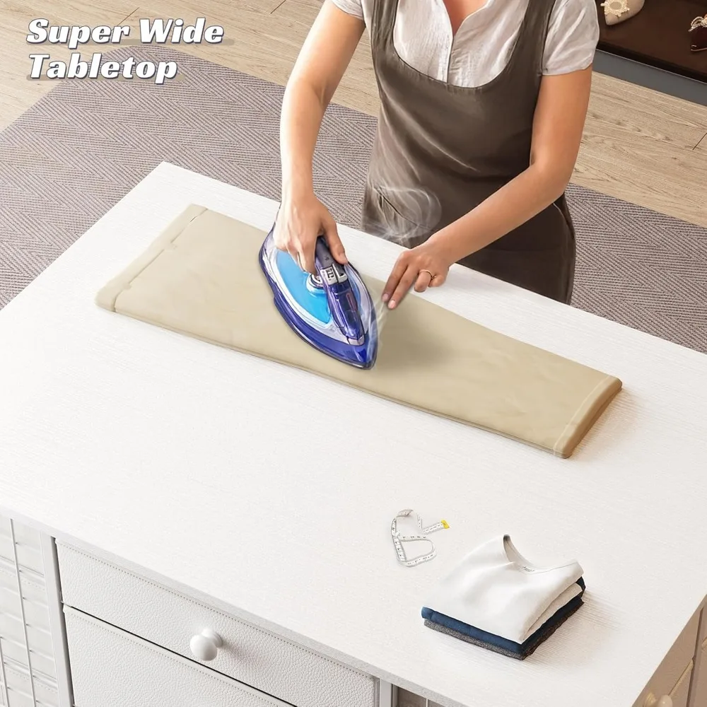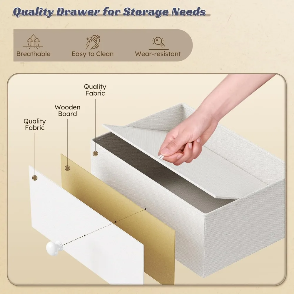 - Unique Bedroom Drawer Dresser Island:Say goodbye to cluttered closet spaces. Dresser island combines white fabric drawers and grid Design, creates a stylish and functional space. The super wide wooden top offer large space perfect for displaying and organizing your accessories or cosmetics, making it easy to match your everyday outfit.