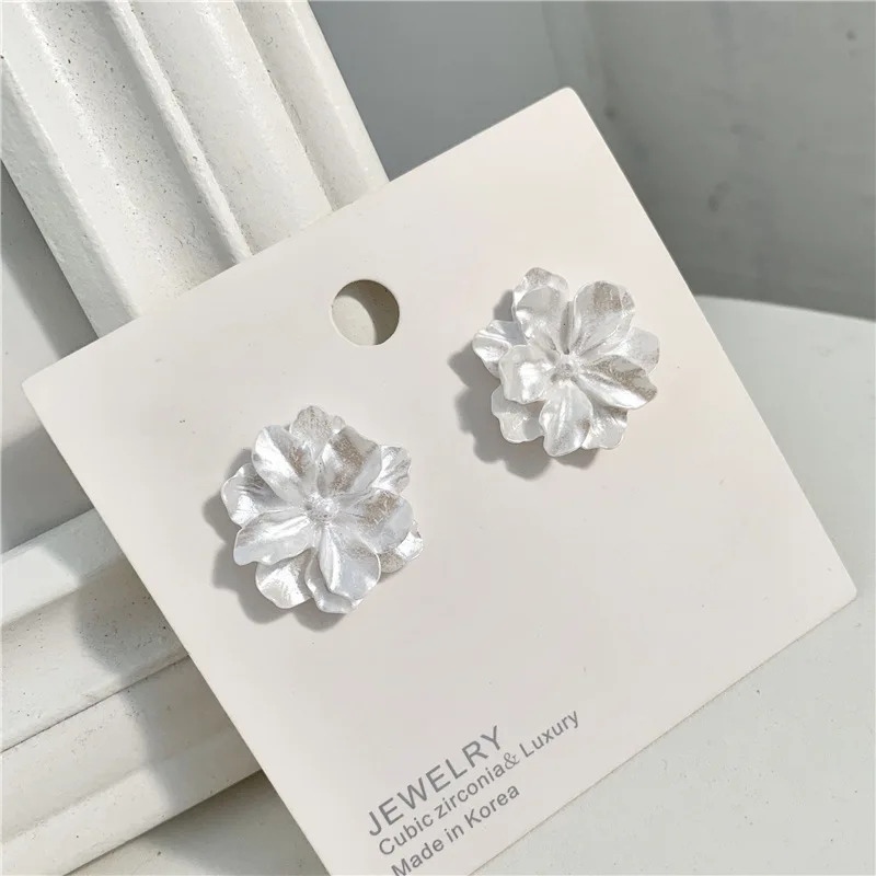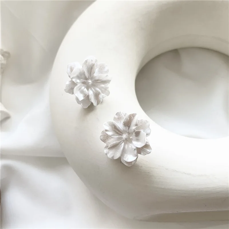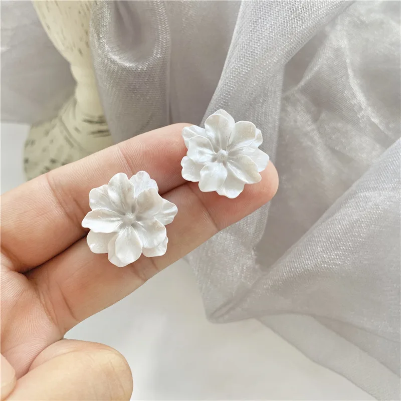 White Flower Stud Earrings for Women New Modern Korean Fashion Cute Camellia Girl Party Jewelry Accessories