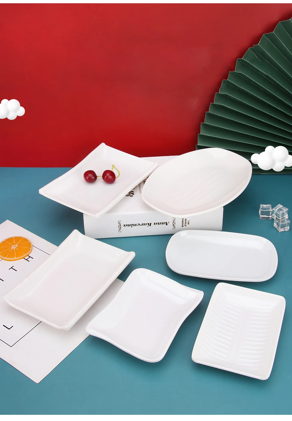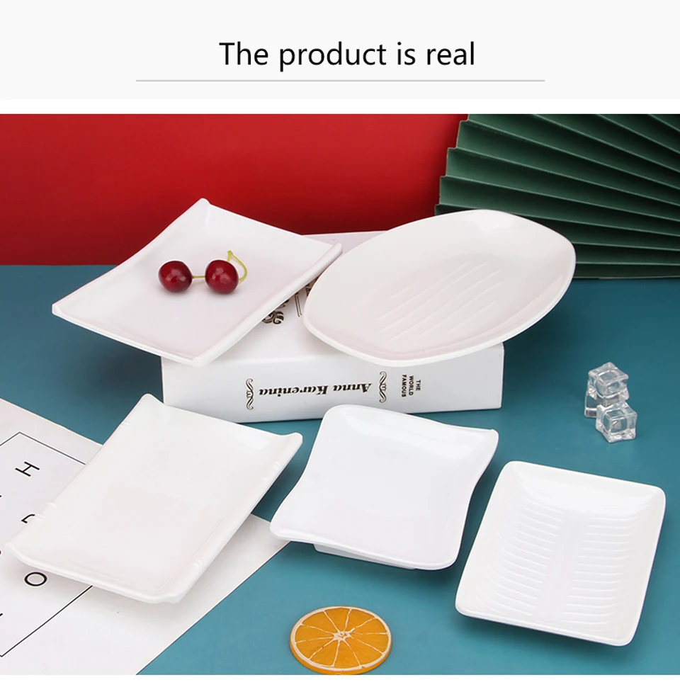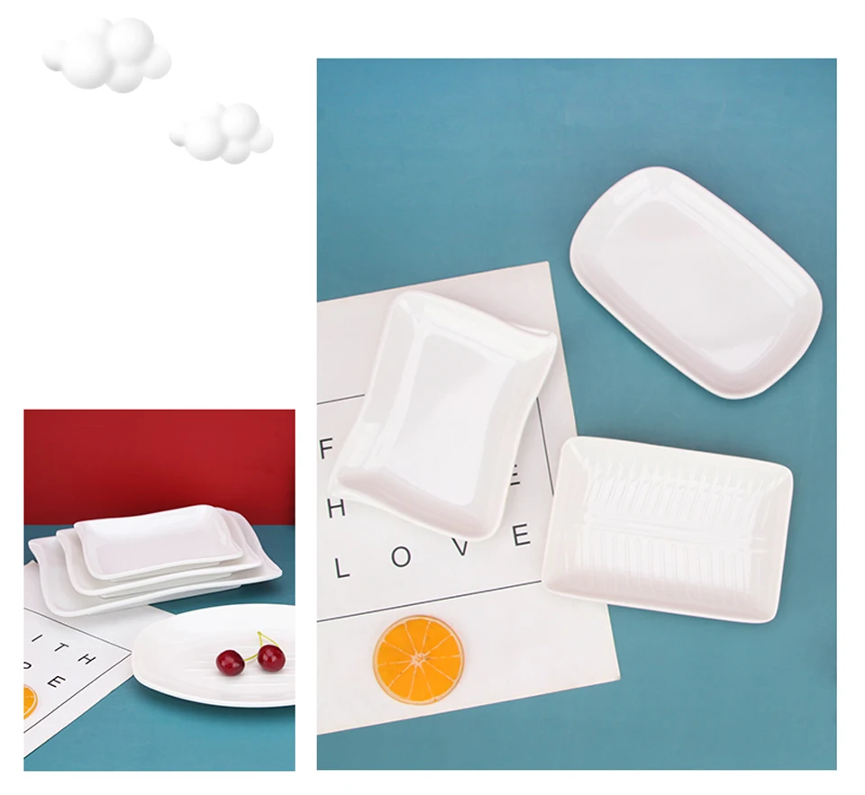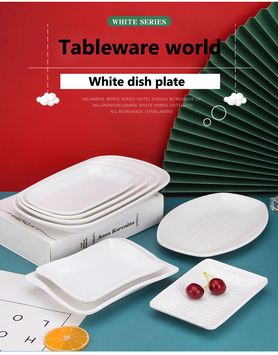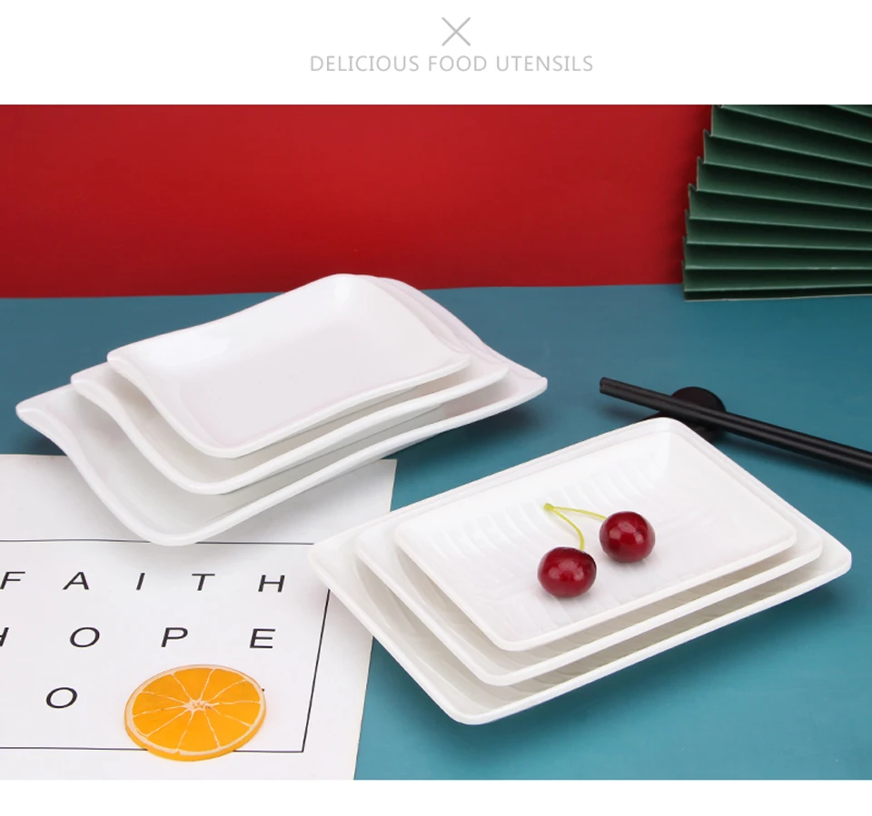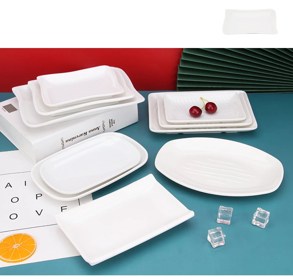White Imitation Porcelain Fish Plate Restaurant Buffet Plate Hot Pot Side Dish Plate Barbecue Skewers Rectangular Bread Plate