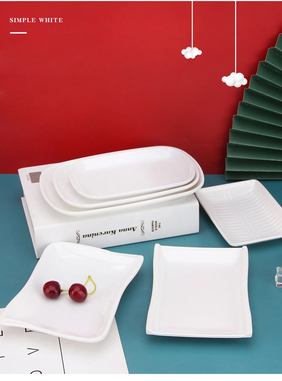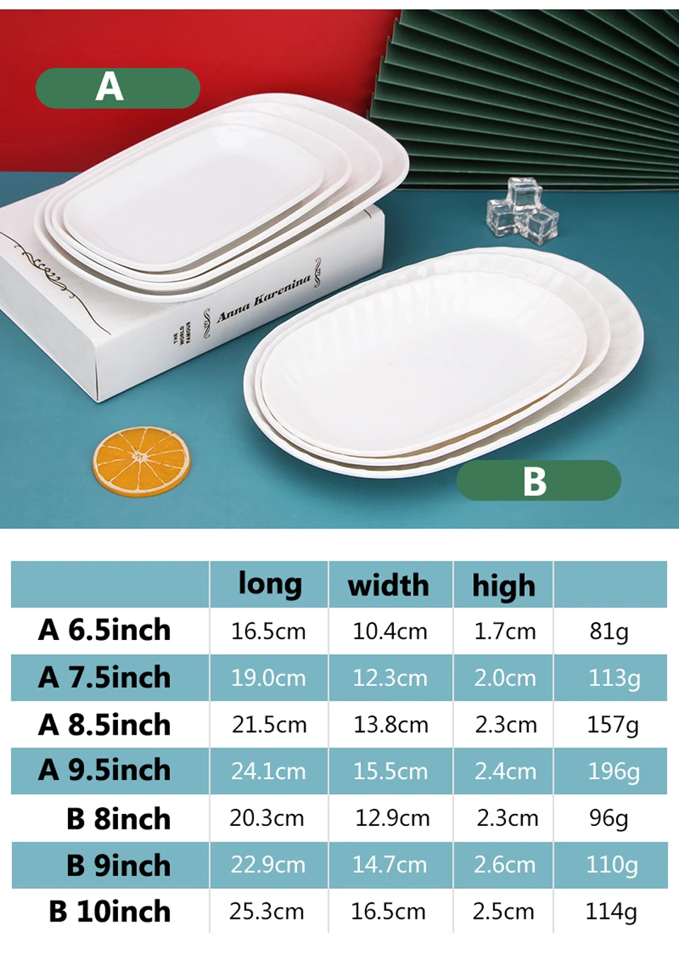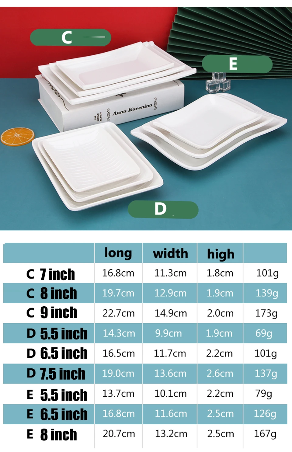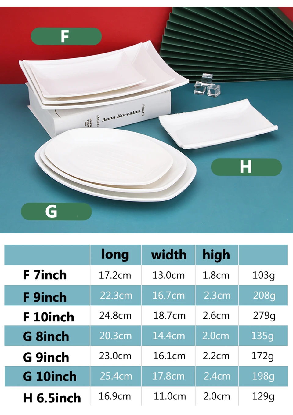 White Imitation Porcelain Fish Plate Restaurant Buffet Plate Hot Pot Side Dish Plate Barbecue Skewers Rectangular Bread Plate