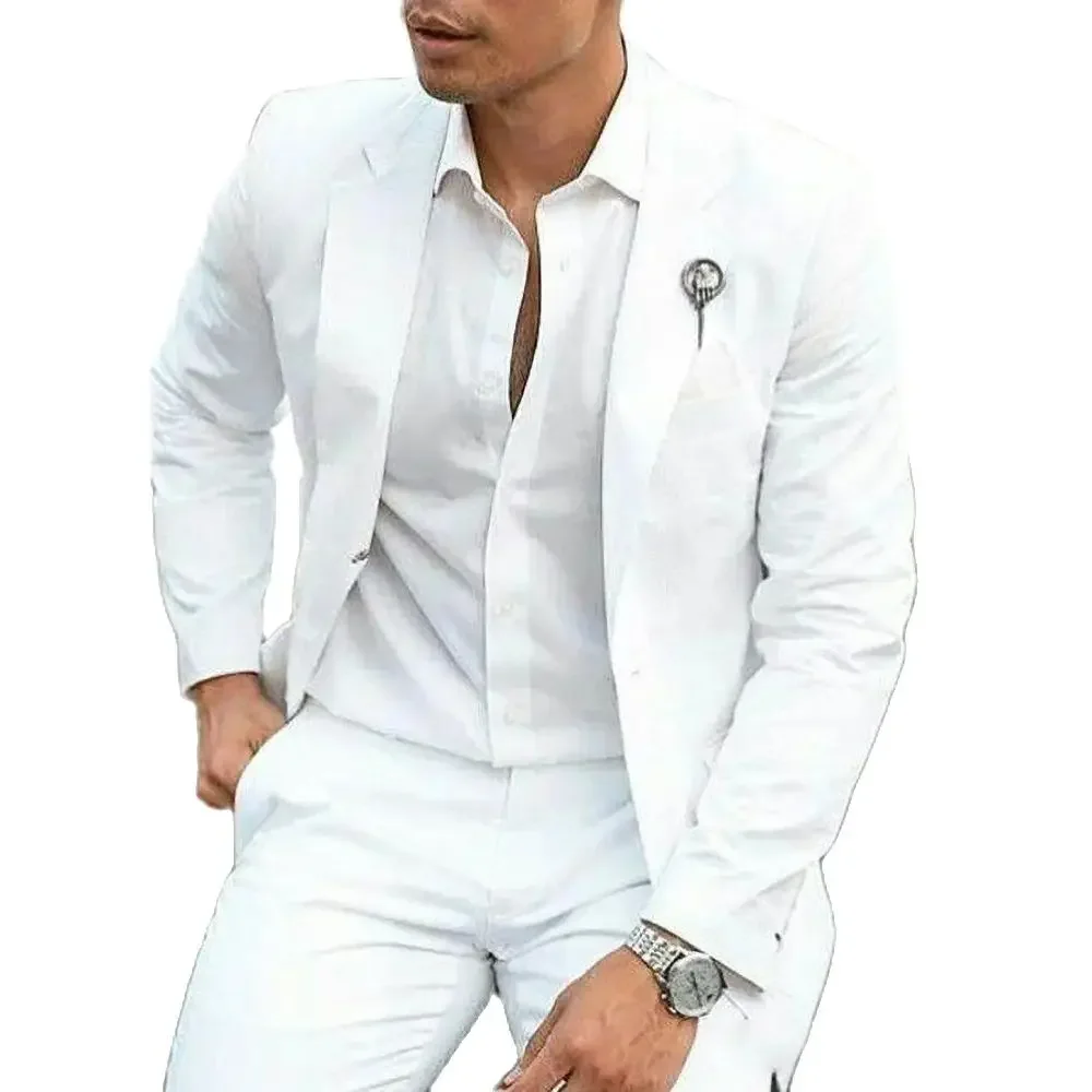 White Men Suit Fashion Notch Lapel Smart Office Casual Male Suit Slim Fit Wedding Two Piece(Blazer+Pants)