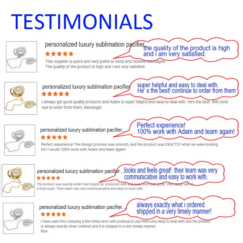 2. The super soft silicone pacifier is carefully designed to make your baby feel comfortable. The outward curve keeps the nipple away from the delicate skin, while features such as air holes and safety handles ensure that your baby stays safe. Odor free silicone, free of BPA, PVC and phthalates.