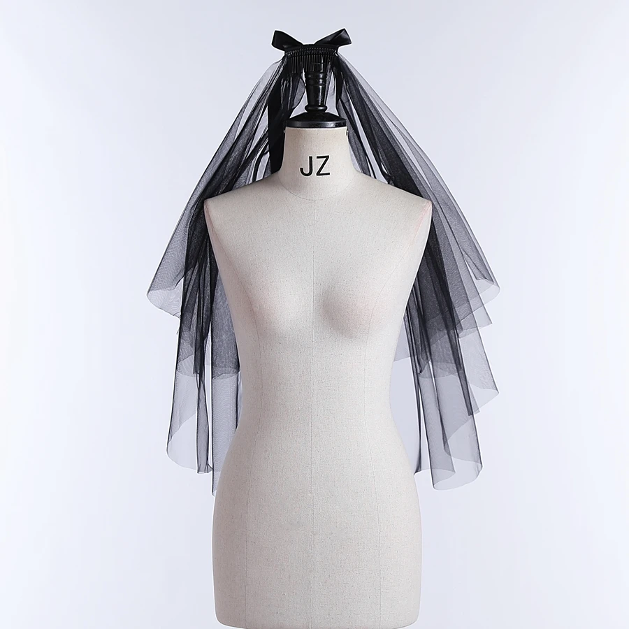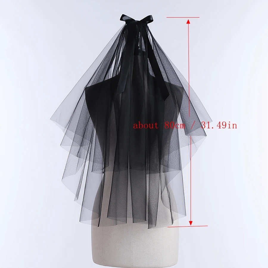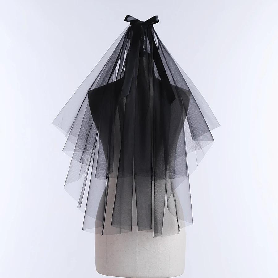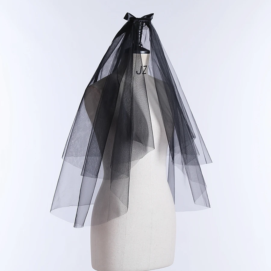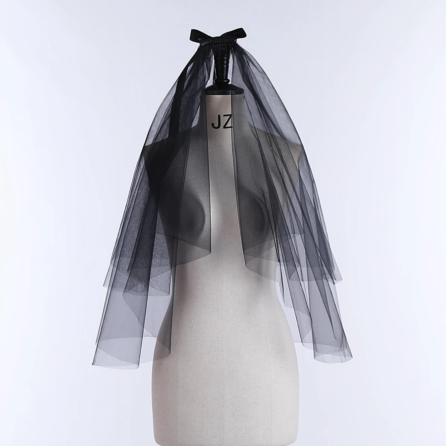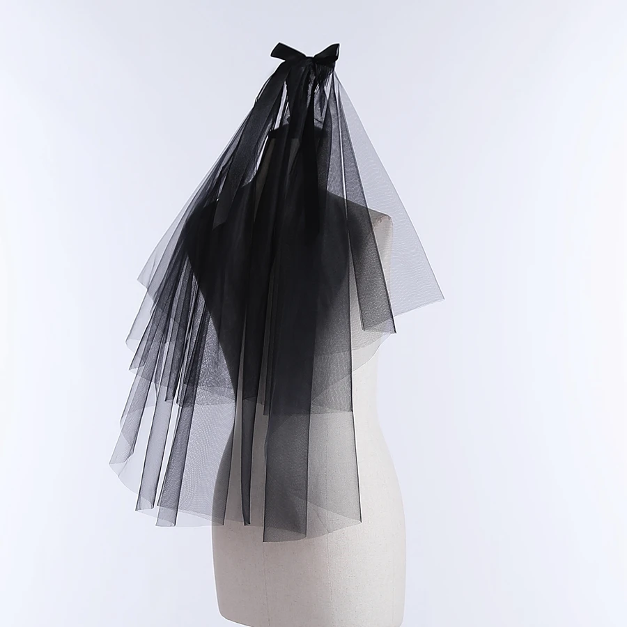 Wholesale Short Wedding Veils Black Two Layer Bridal Veils With Bowknot Decor Bridal Accessories Velo De Novia