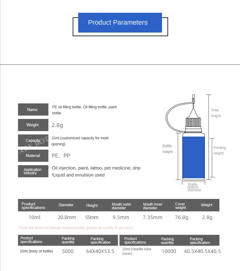 Wholesale3-120ml Sub-bottling Translucent Pigment Essential Oil Squeeze Oil-injecting Tattoo Pigment Sub-bottling Needle Bottle