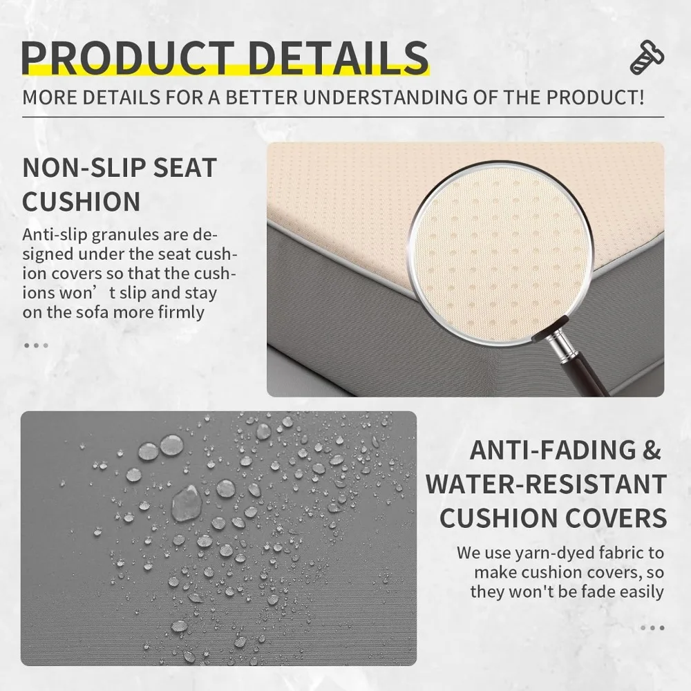 - UPGRADED COMFORT: There are anti-slip granules designed under the seat cushions so that the cushions won’t slip; the sofa feet are designed twice high than most similar furniture set, more user-friendly; our high resilience thick padded cotton cushion, will provide you the optimal comfort and relaxation
