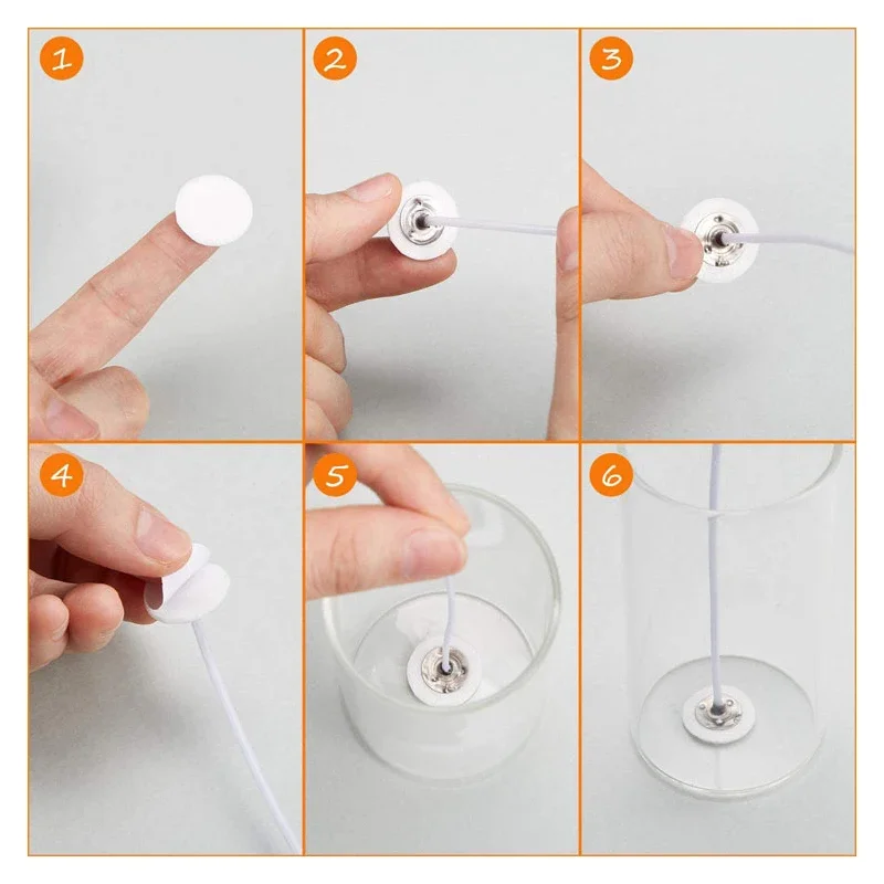 Place them on the bottom of the wick and adhere your wick to the bottom of the jar, put it for two hours and then pour wax water, easy to keep the wick centered, making your DIY candle more convenient and easy.