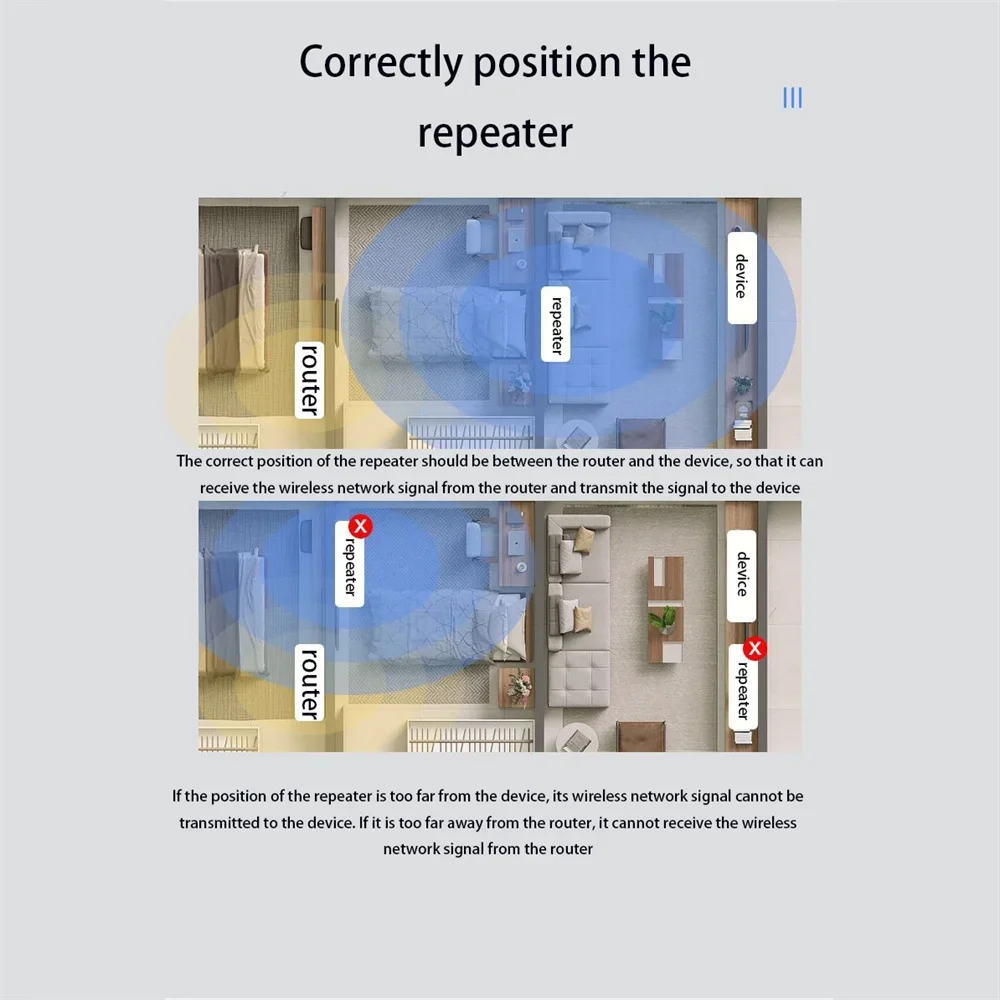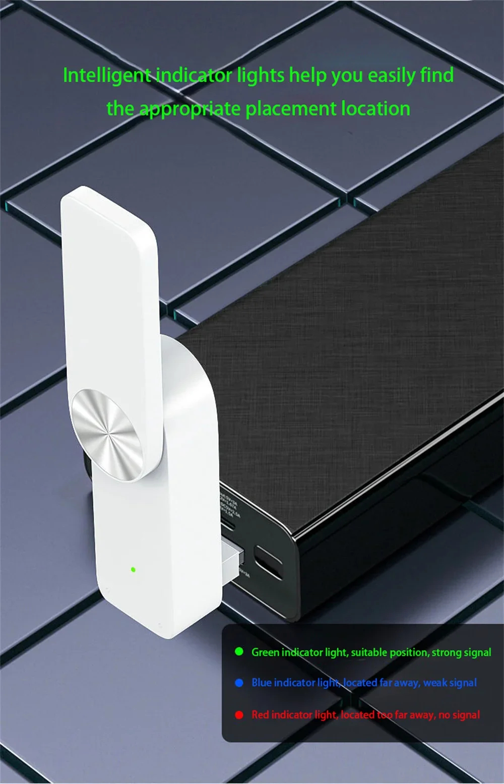 3.Intelligent Signal Indicator: Featuring an intelligent signal indicator, this WiFi extender helps you easily locate the ideal placement by displaying different colors based on the signal strength. Achieve the best wireless expansion effect effortlessly.
