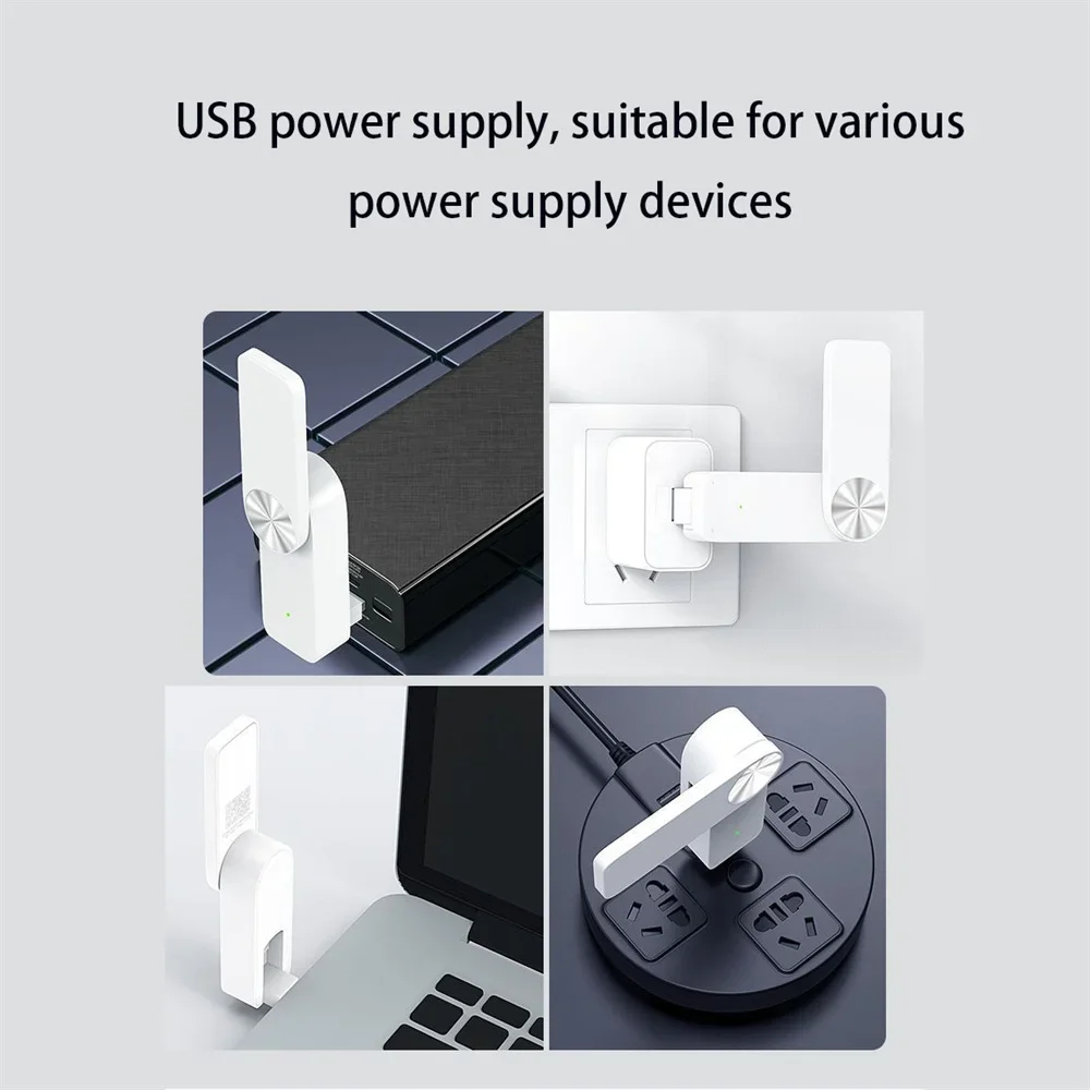 4.Plug-and-Play, USB Powered: Powered by USB, this WiFi booster can be conveniently plugged into a variety of power sources such as sockets, power banks, and computers. Its compact size and versatile placement options allow for flexible positioning without taking up space.