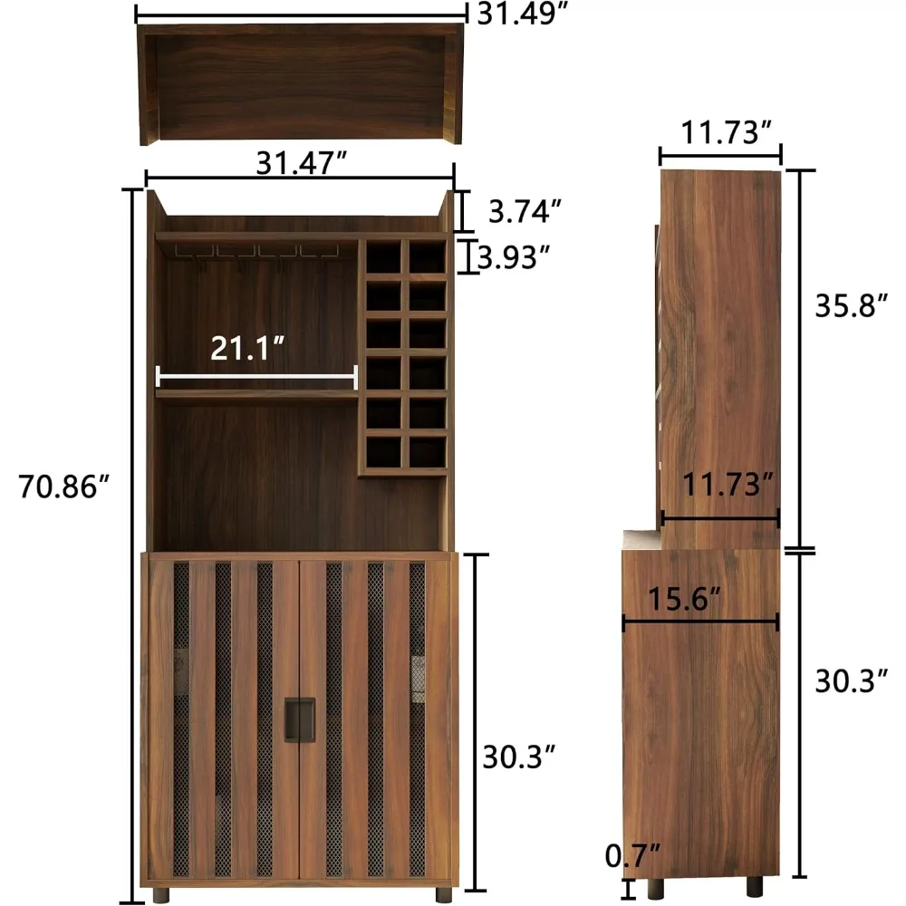 - Stylish Cabinet Doors: The cabinet doors feature a grid and wooden slat design that not only adds a touch of elegance, but allows you to see your wine bottles without having to open the door. The door features a grooved handle, allowing you to open and close it with ease. Due to the unique design of the door, it presents a perfect fusion of taste and modernity, making the entire cabinet more beautiful and becoming a highlight of home decoration.
