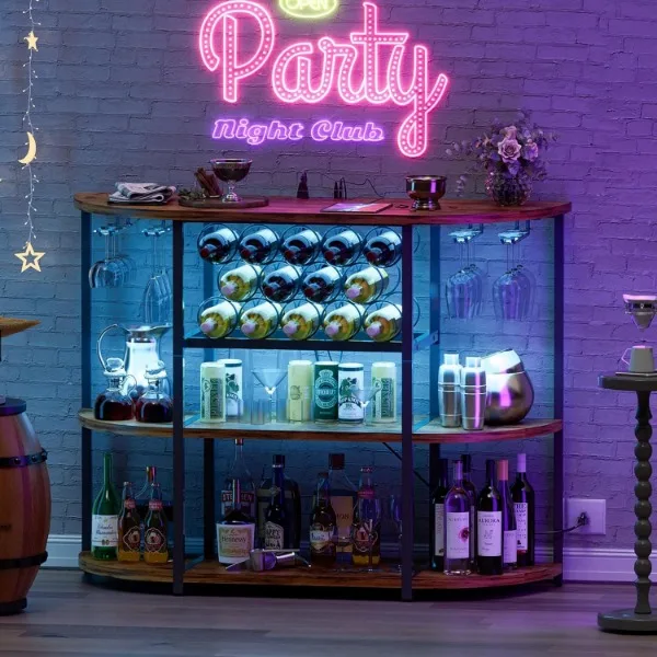 Wine Bar Cabinet for Liquor Bar Table Bar Cabinet with Lights & Outlet 4-Tier Storage Freestanding Wine Racks with Glass Holder