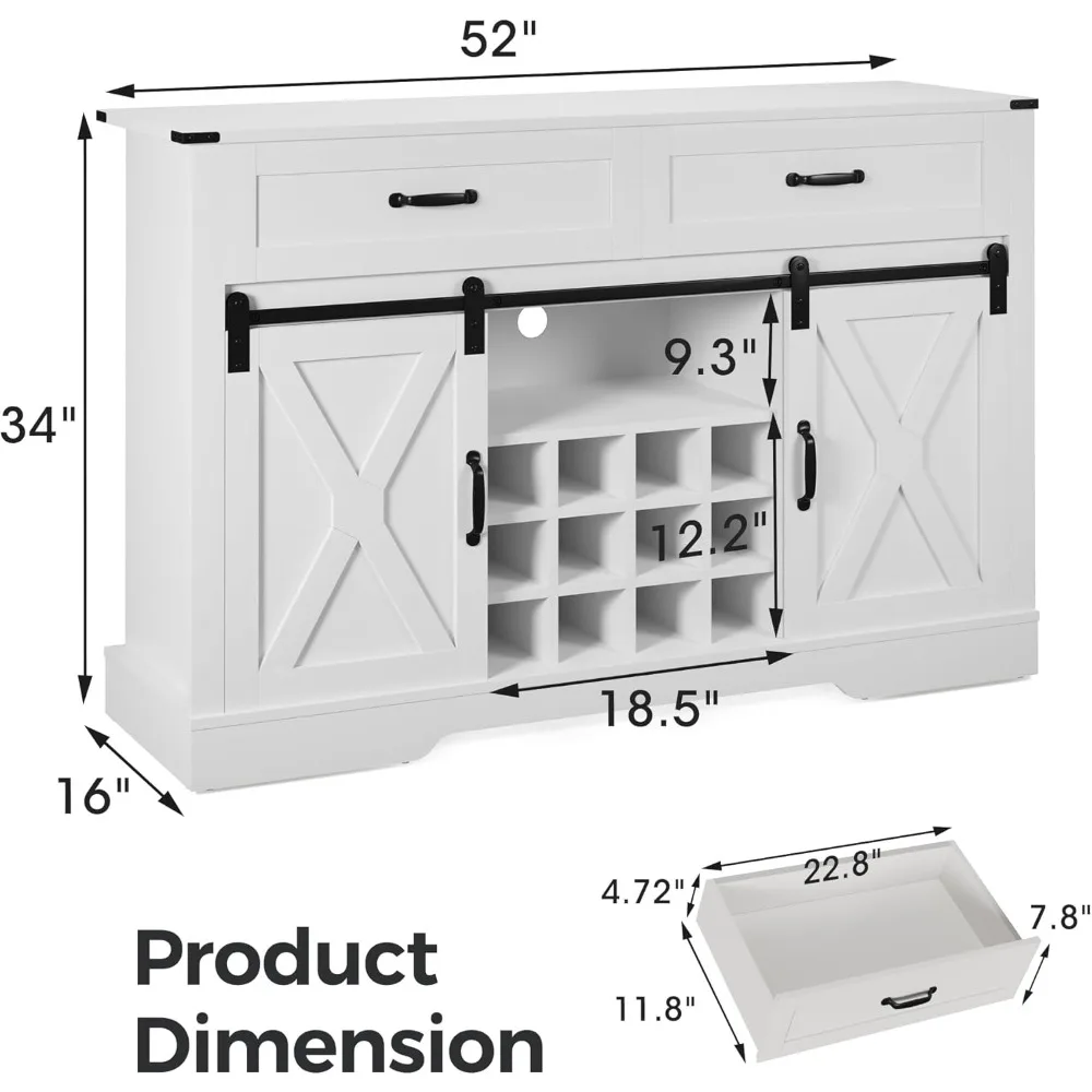 Wine Bar Cabinet w/Sliding Barn Door, 52″ Kitchen Coffee Bar Cabinet w/12 Removable Wine Rack, Storage Shelves, Rustic Buffet