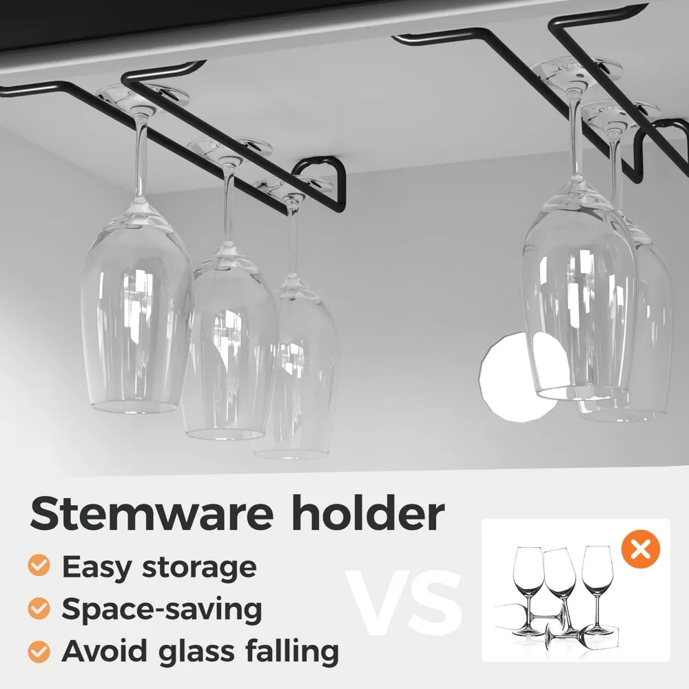- 【Ample Storage & Removable Shelves】The spacious wood top(52″W x 16″D) can accommodate a coffee machine, microwave and other daily necessities. At the same time, this coffee bar cabinet features 12 removable grid shelves for keeping your wine bottle organized and 2 rows of stemware racks offer a tidy and dry hanging space for glasses, which can easily accommodate all kitchen utensils.