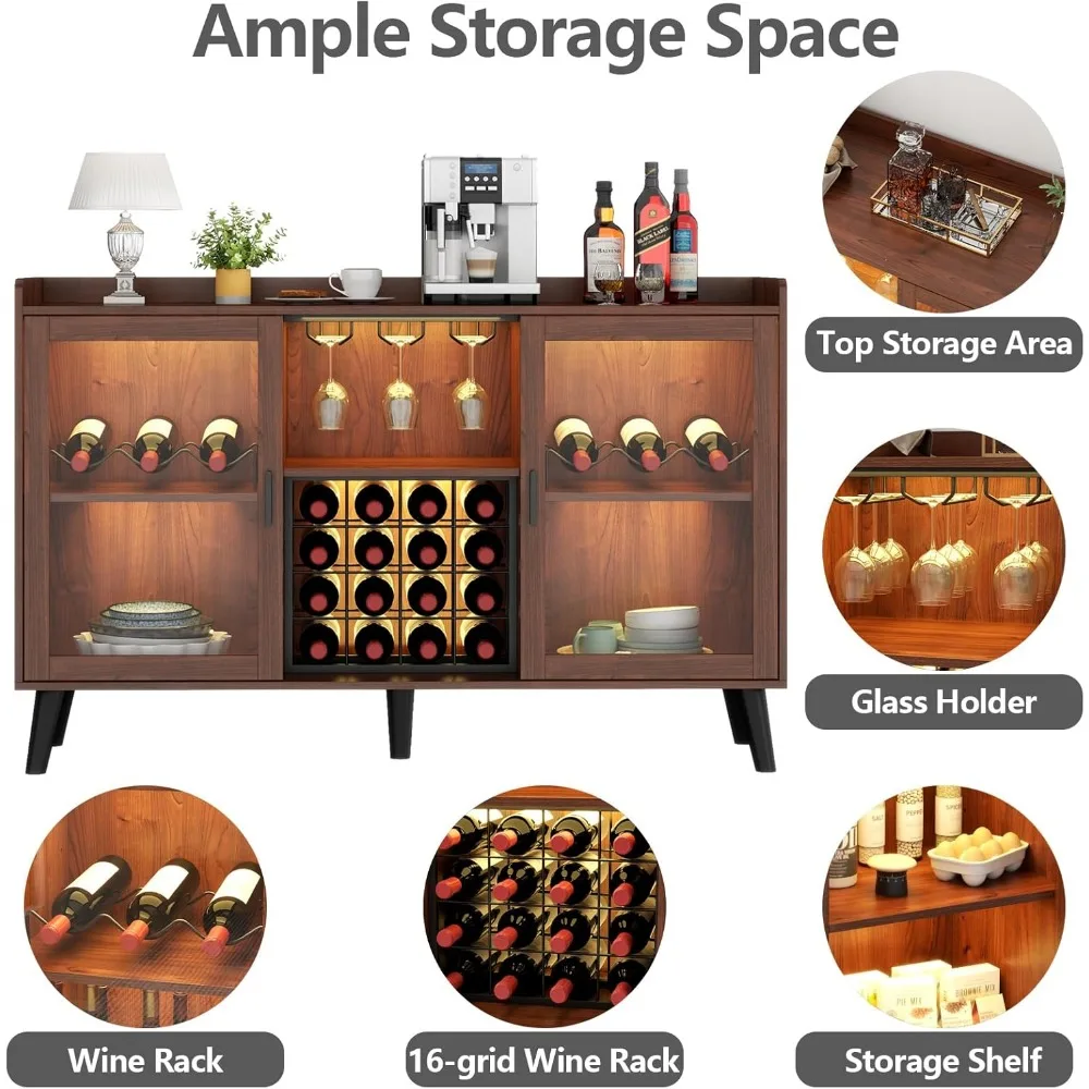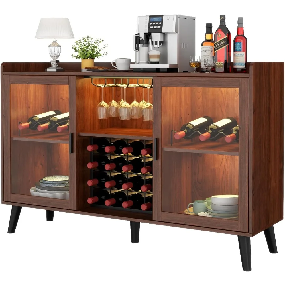 Wine Bar Cabinet with Led Light, Home Coffee Cabinet with Wine and Glass Rack, Kitchen Buffet Sideboard with Storage Shelves