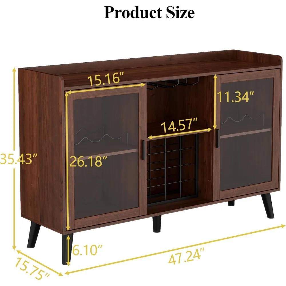 - 🍷【Dimension & Materials】 The overall size of the wine bar cabinet is 15.75″D x 47.24″W x 35.43″ H. The bar cabinet is composed of a high-quality E1 Particleboard and MDF, which can withstand the challenge of long-term use and can support excellent stability and load-bearing capacity. The countertop supports up to 150 Ibs, easily accommodate your small appliances. The anti-tipping kits ensure safety. You don’t worry about the bar cabinet falling by accident.