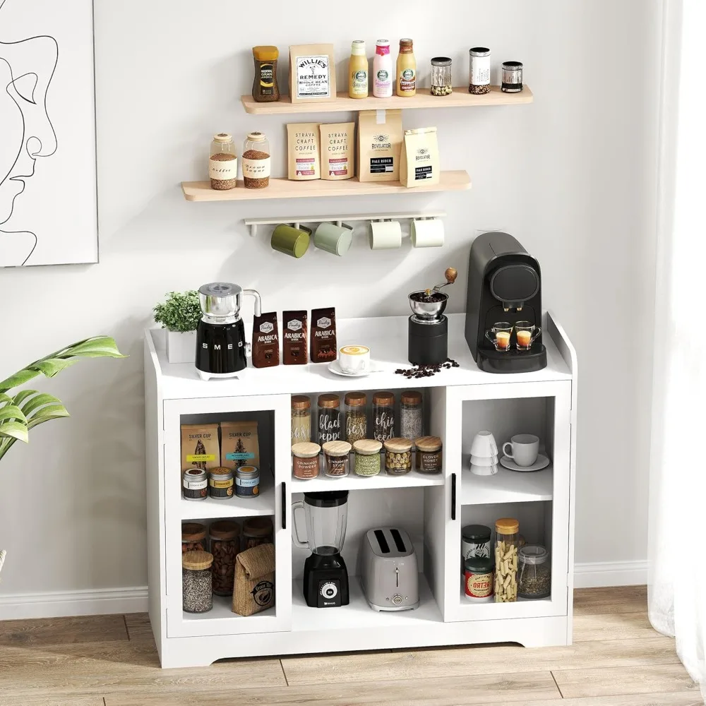 - 【Modern Design】 This coffee bar cabinet boasts a modern and sophisticated design that makes it a stylish addition to any home. Its sleek, minimalist lines and glossy white finish lend a contemporary touch that can seamlessly fit into various interior decor styles, from modern to transitional spaces.