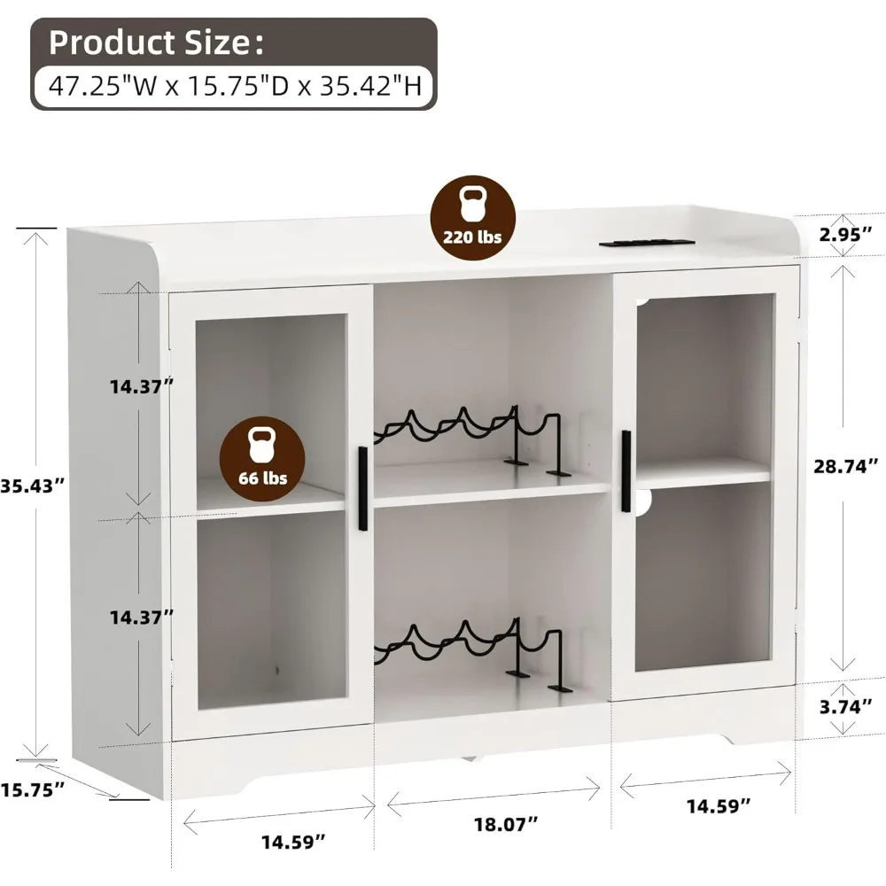 - 【Dimensions&Durability】 This storage cabinet measures 47.25″W x 15.75″D x 35.43″H. It is crafted from high-quality MDF wood and robust glass doors, the durability of these materials ensures that the kitchen bar cabinet remains a long-lasting piece in your home, suitable for everyday use, and able to withstand the demands of a busy lifestyle.